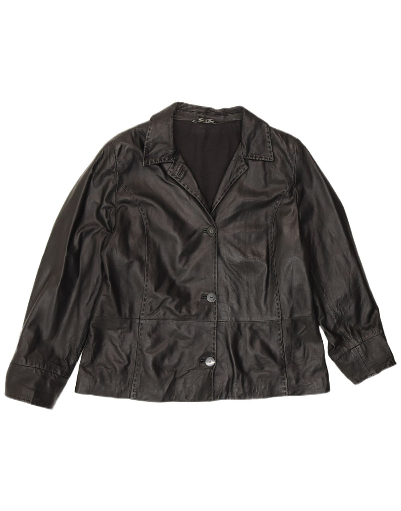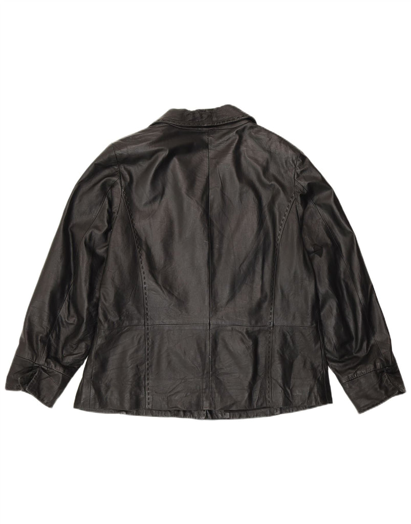 VINTAGE Womens 3 Button Leather Blazer Jacket UK 20 2XL Black Leather