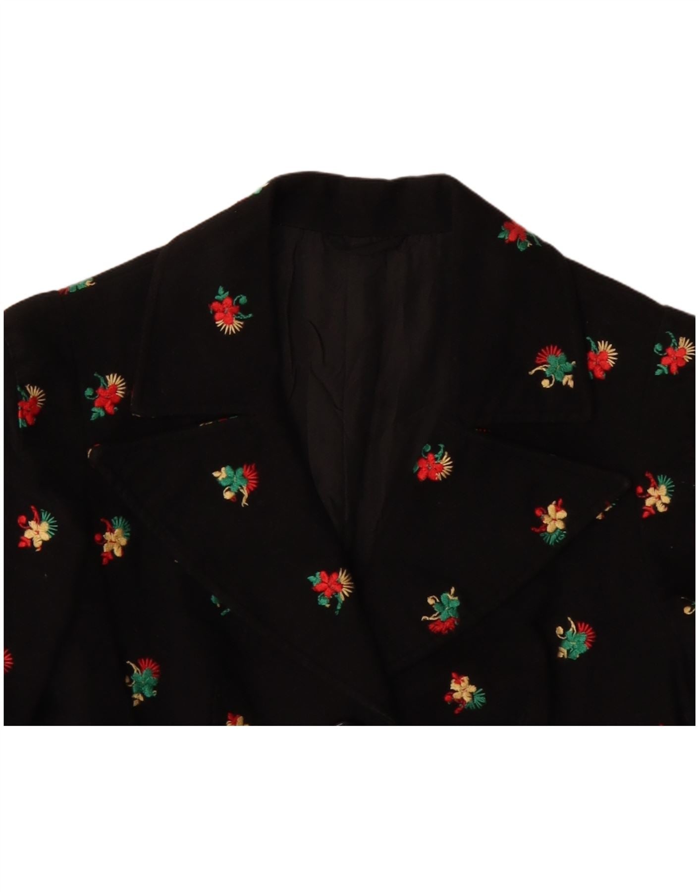 VINTAGE Womens 4 Button Blazer Jacket UK 10 Small Black Floral