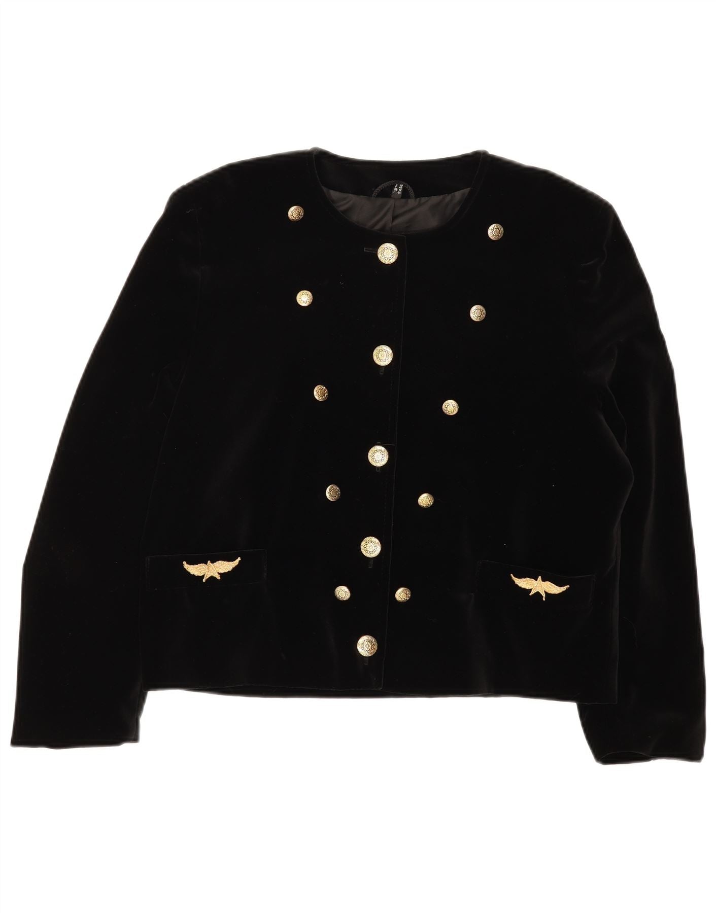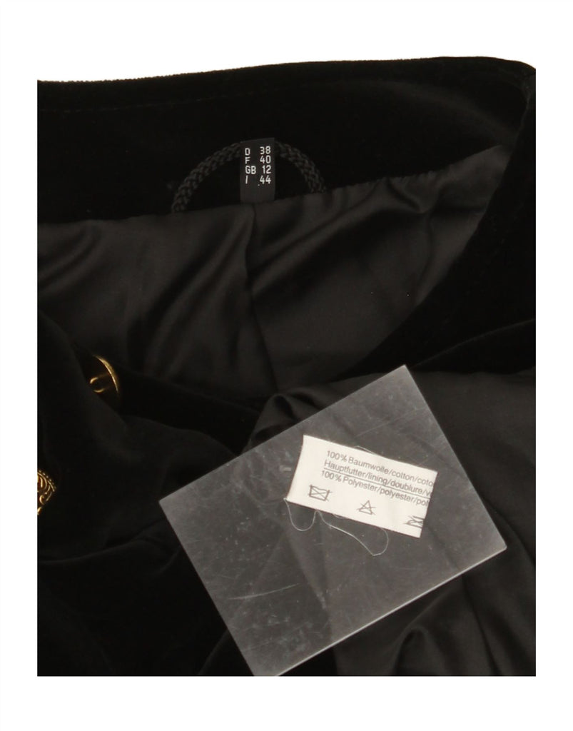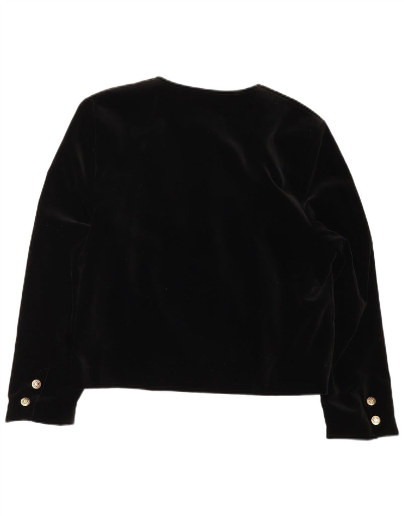 VINTAGE Womens 5 Button Velvet Blazer Jacket UK 12 Medium Black Cotton