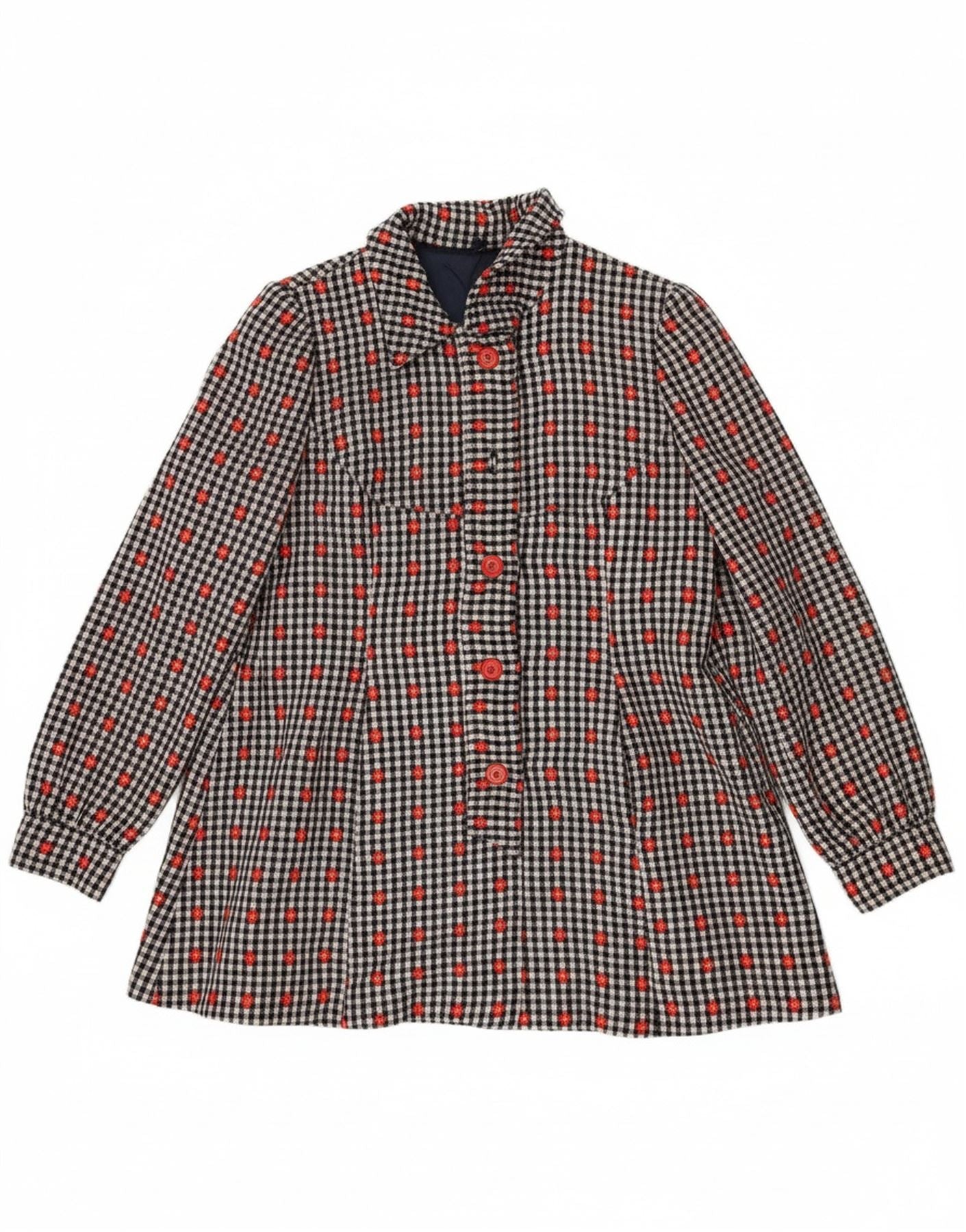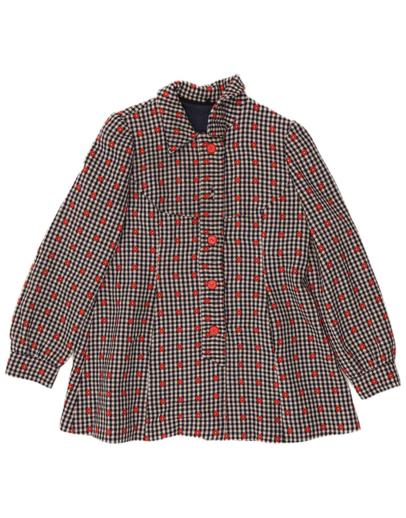 VINTAGE Womens 6 Button Blazer Jacket UK 12 Medium Navy Blue Floral
