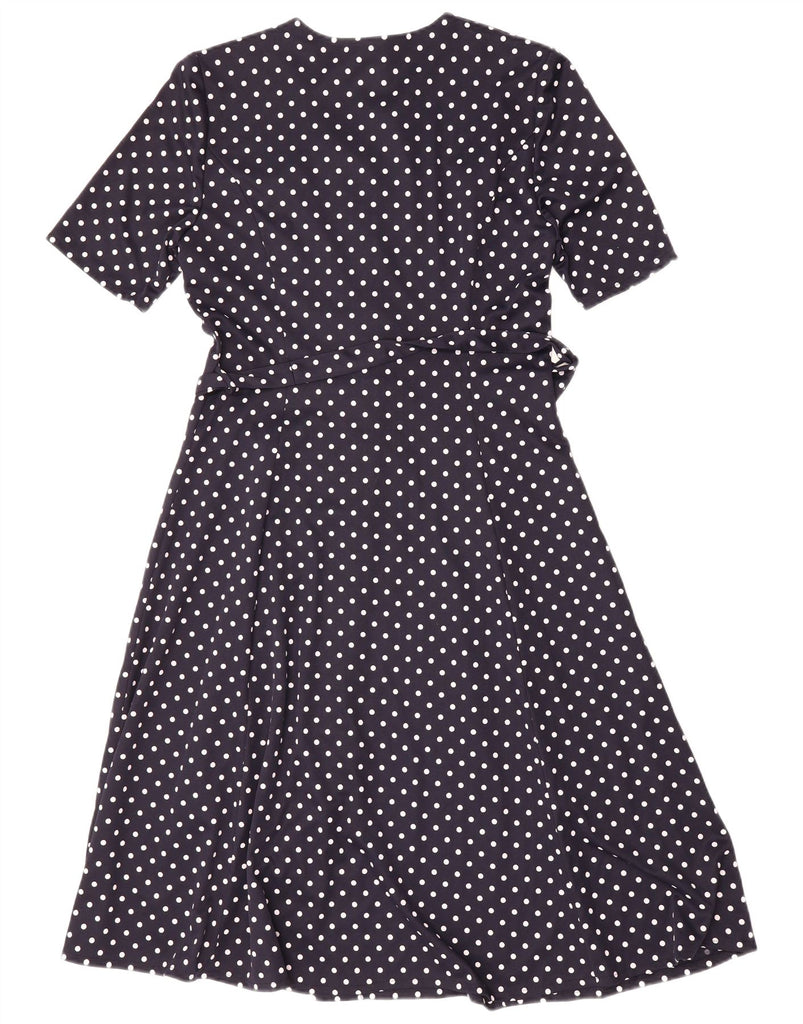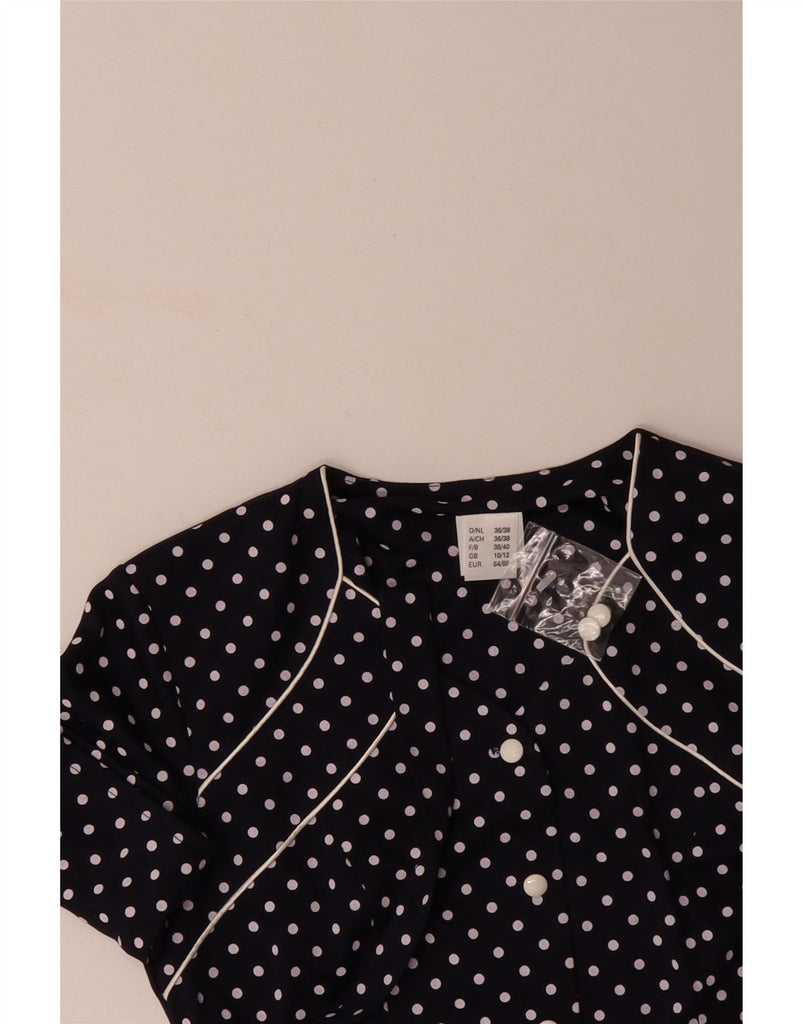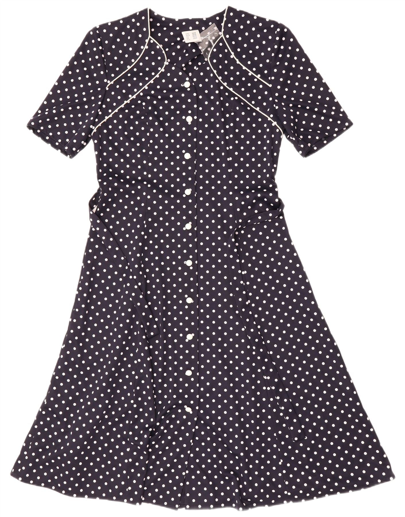 VINTAGE Womens A-Line Dress UK 10/12 Small Navy Blue Polka Dot Polyester