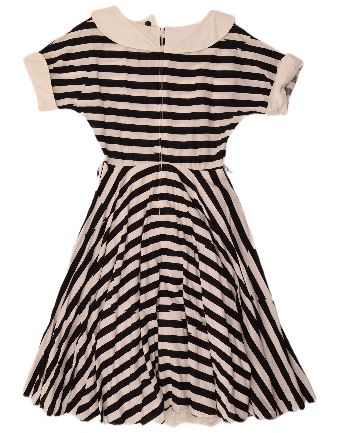 VINTAGE Womens A-Line Dress UK 12 Medium Black Striped