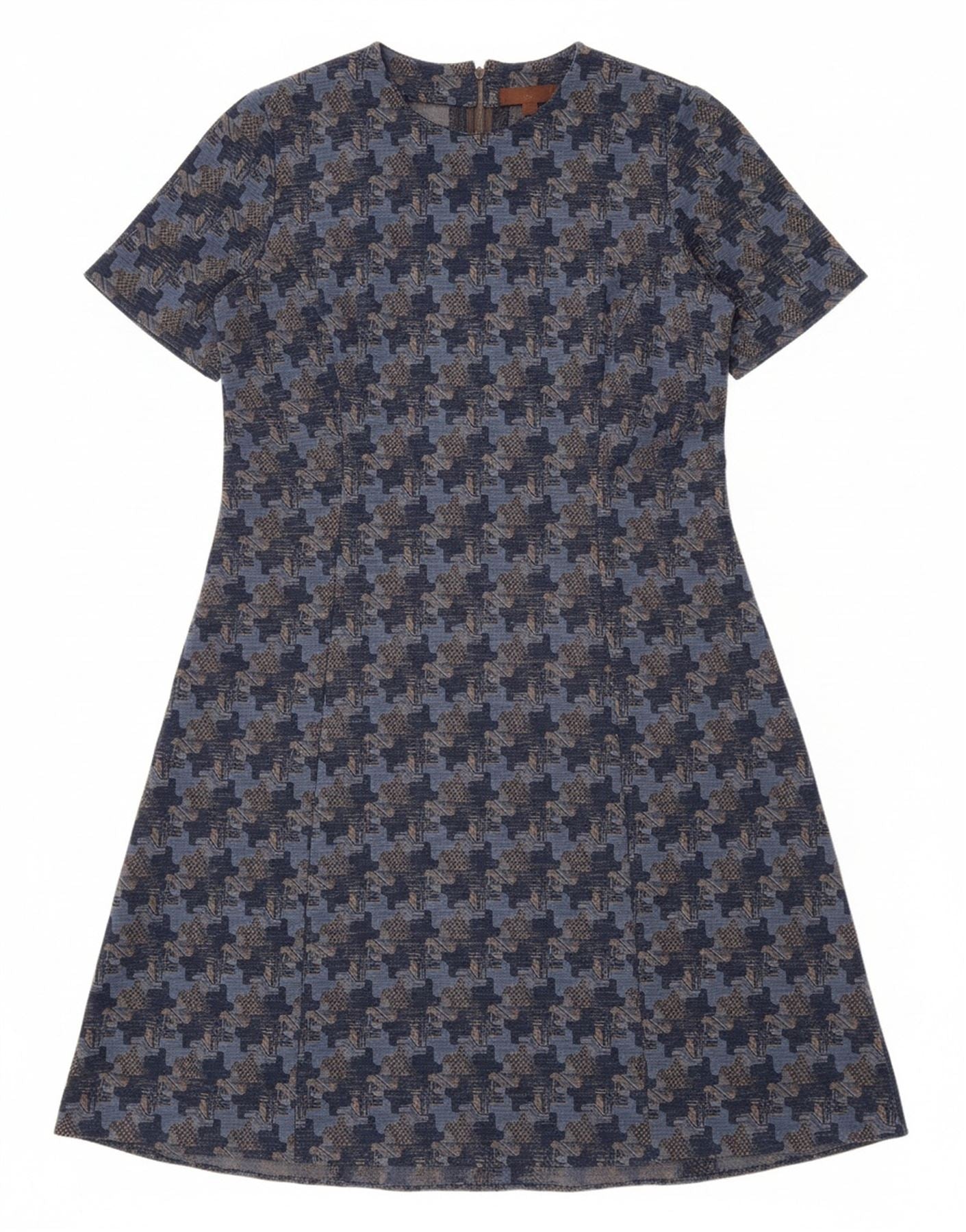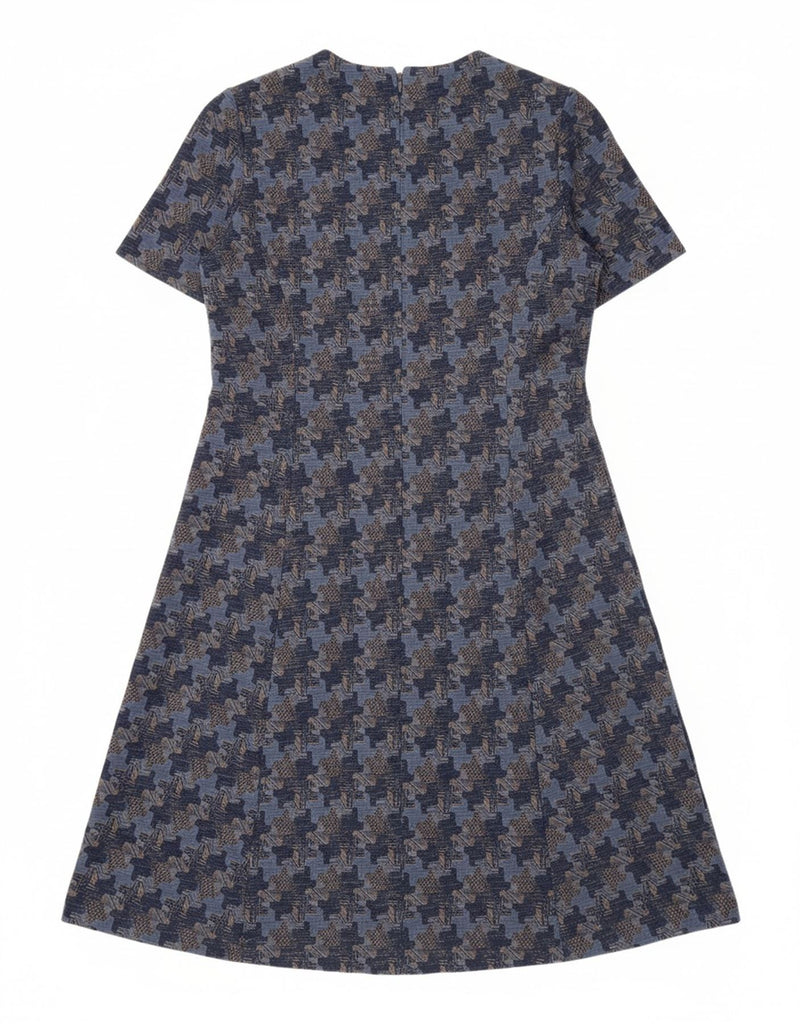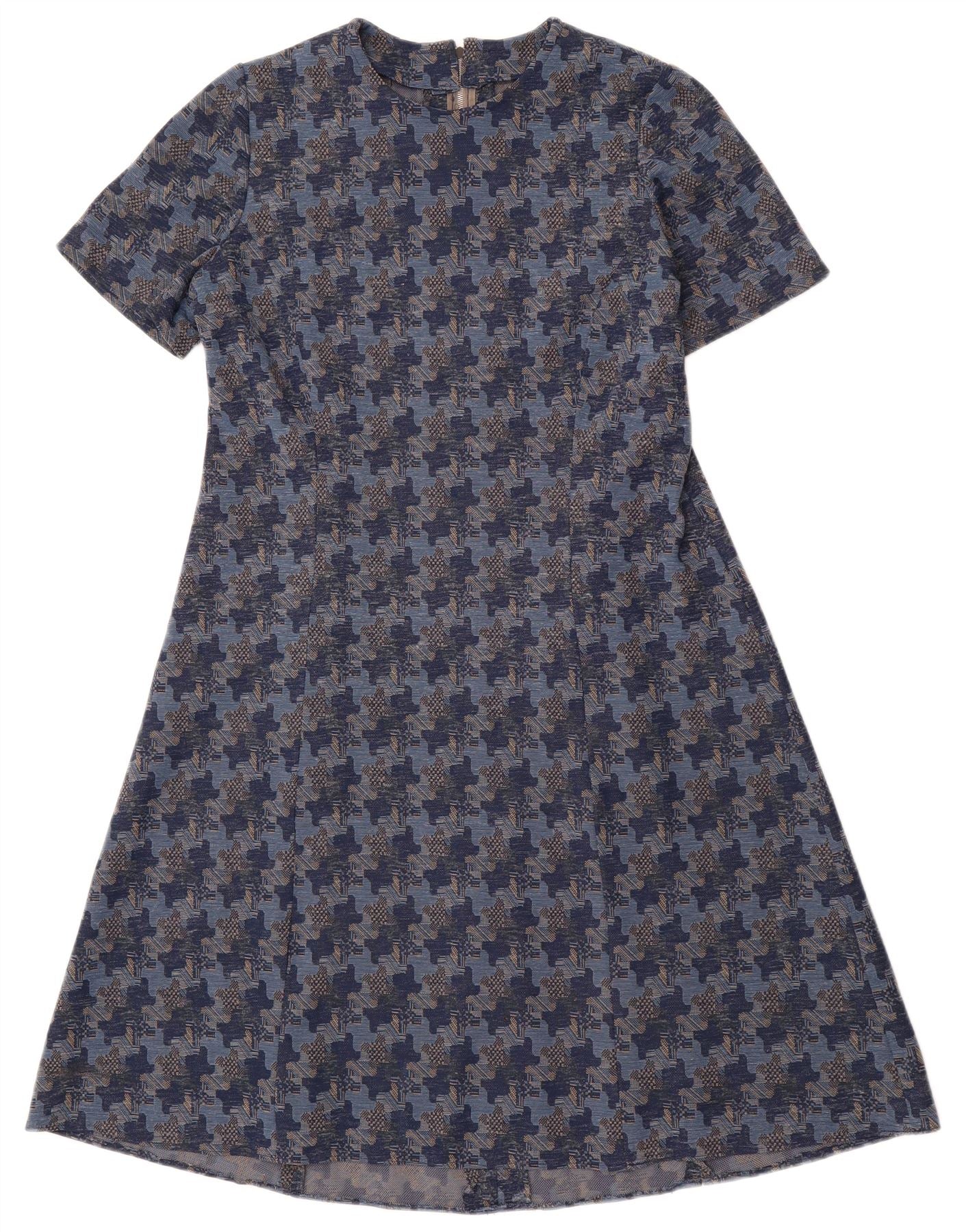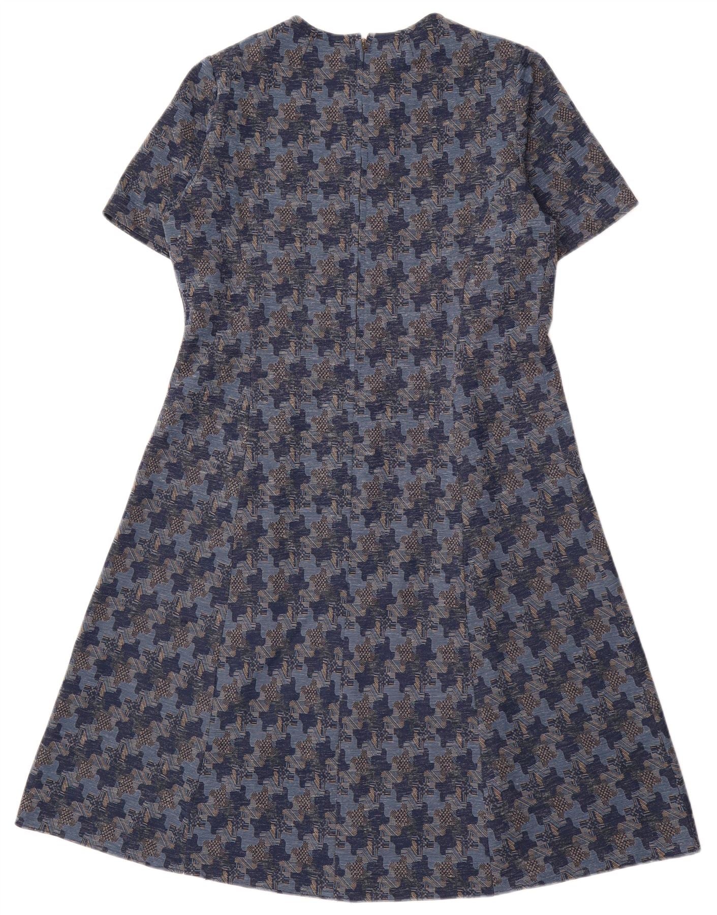 VINTAGE Womens Abstract Pattern A-Line Dress UK 14 Medium Navy Blue