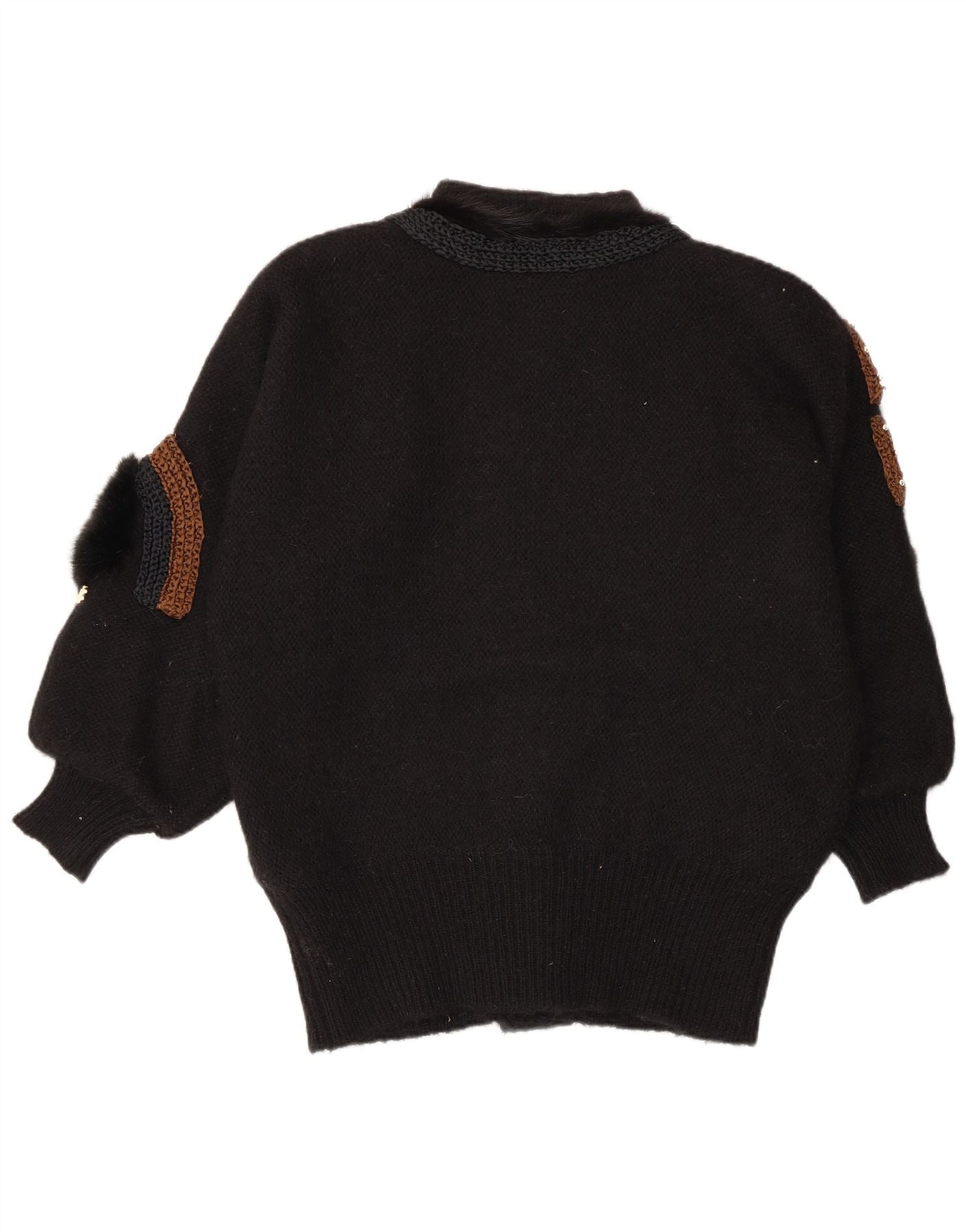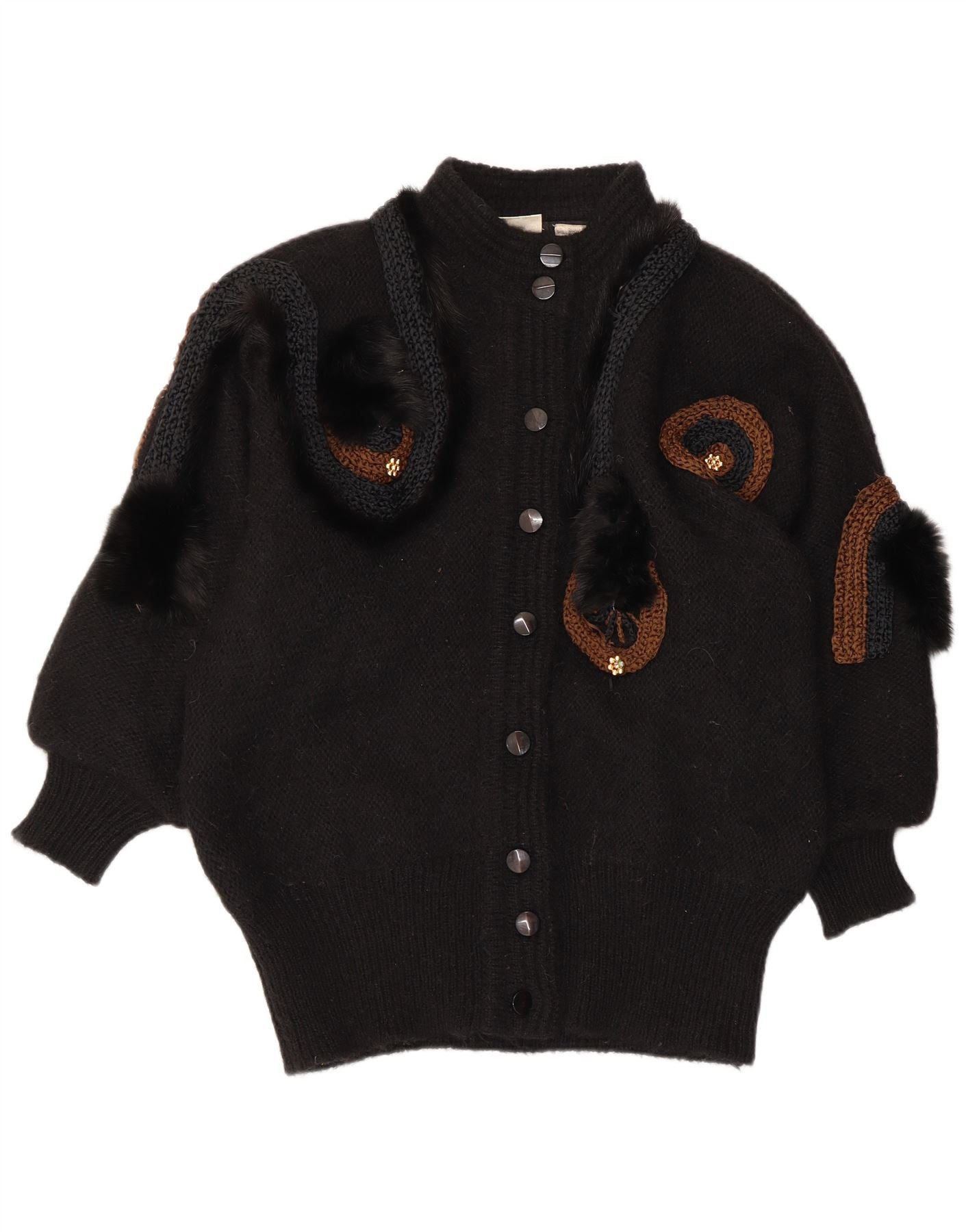 VINTAGE Womens Abstract Pattern Cardigan Sweater EU 42/44 Large Black