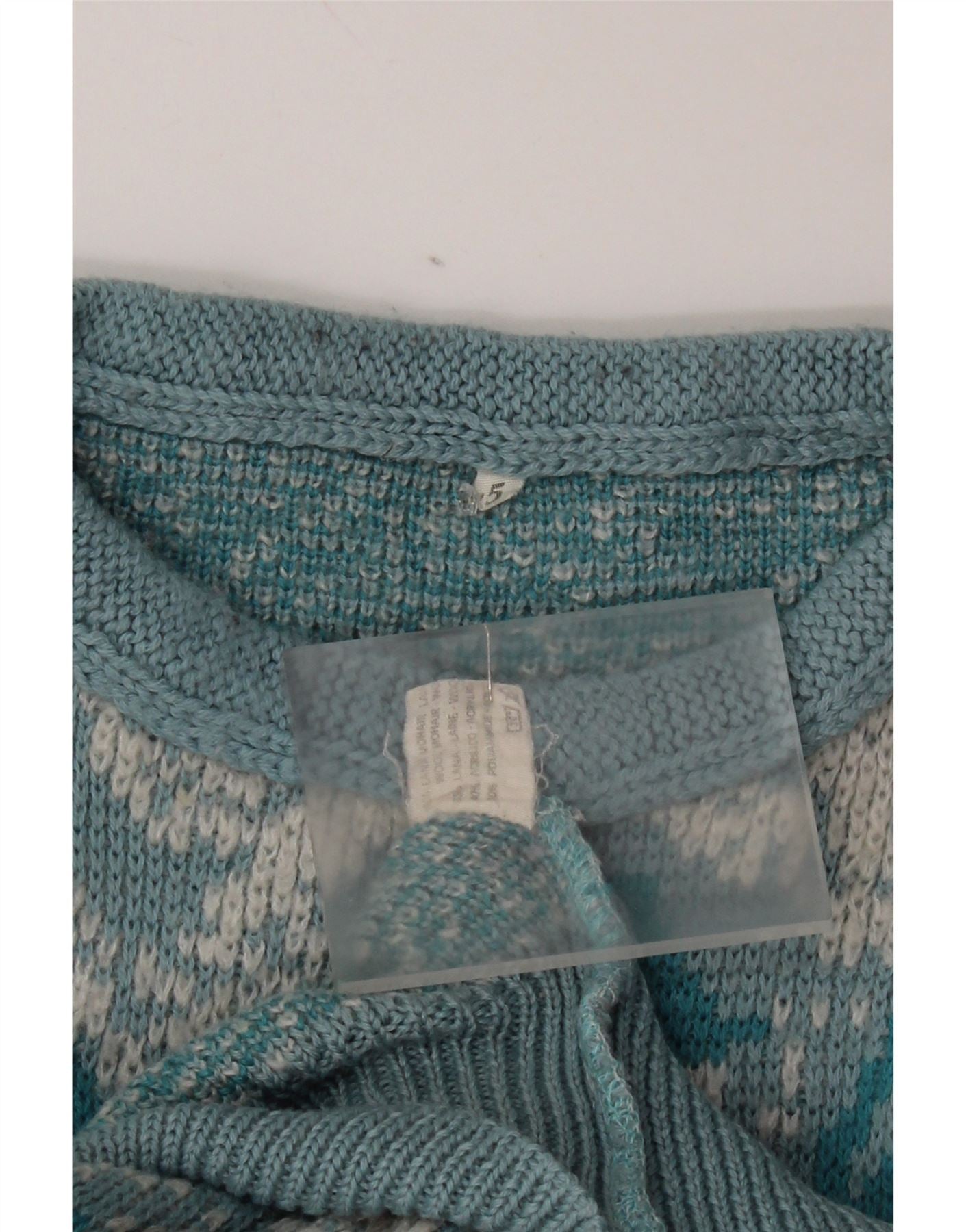 Vintage Womens Abstract Pattern Crew Neck Jumper Sweater UK 16 Large Blue