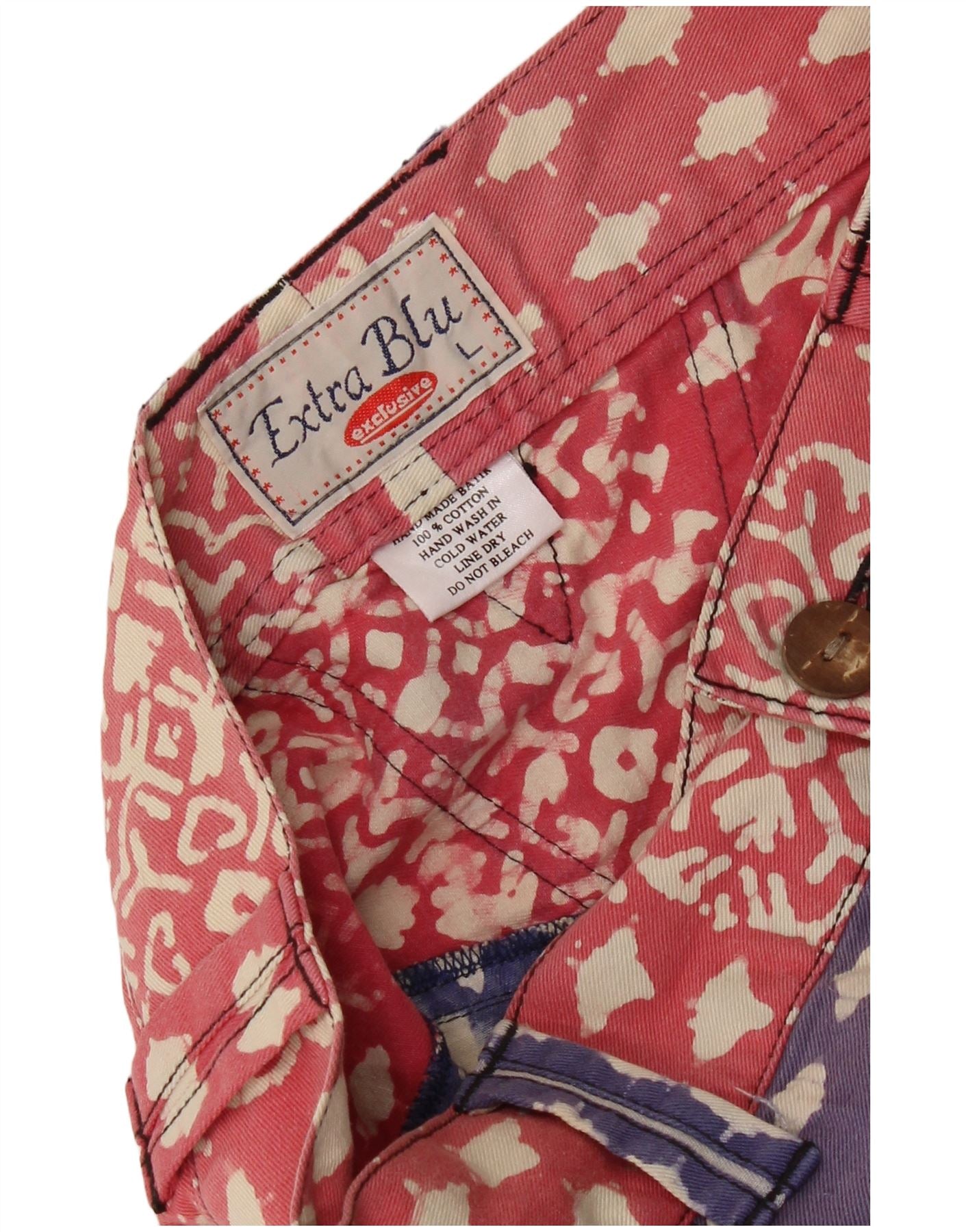 - AI Description: This Extra Blu Exclusive womens mini skirt is crafted from 100 percent woven cotton, offering a comfortable yet structured feel. It features a vibrant multicoloured patchwork design, blending red, blue, and off white in an abstract pattern. The regular fit mini skirt includes practical pockets and a button closure. Its bohemian style is enhanced by the unique crazy pattern.