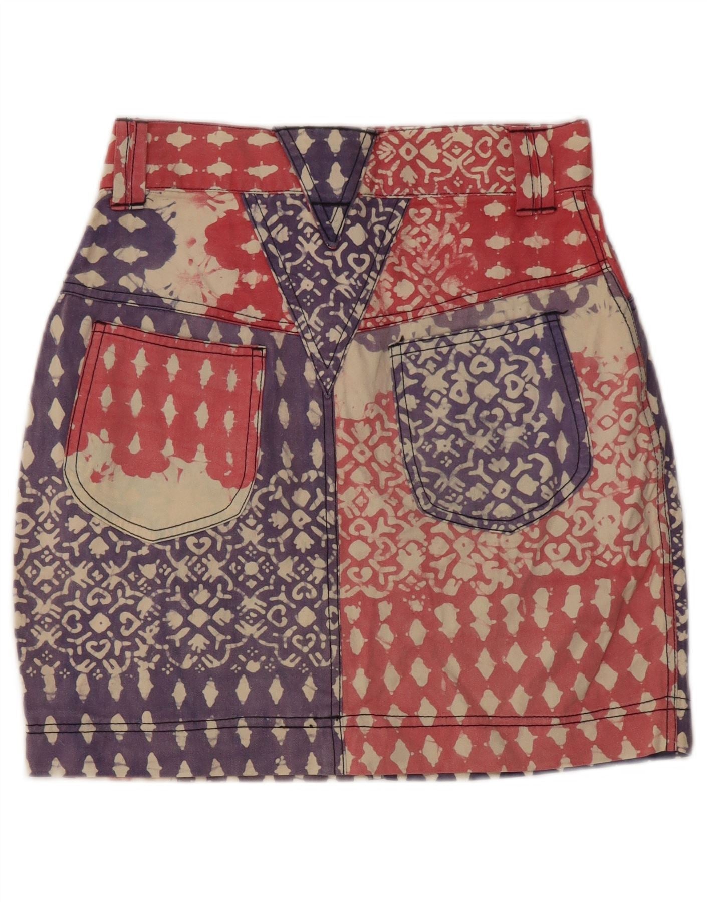 Vintage Womens Abstract Pattern Denim Pencil Skirt Large W28 Blue Cotton