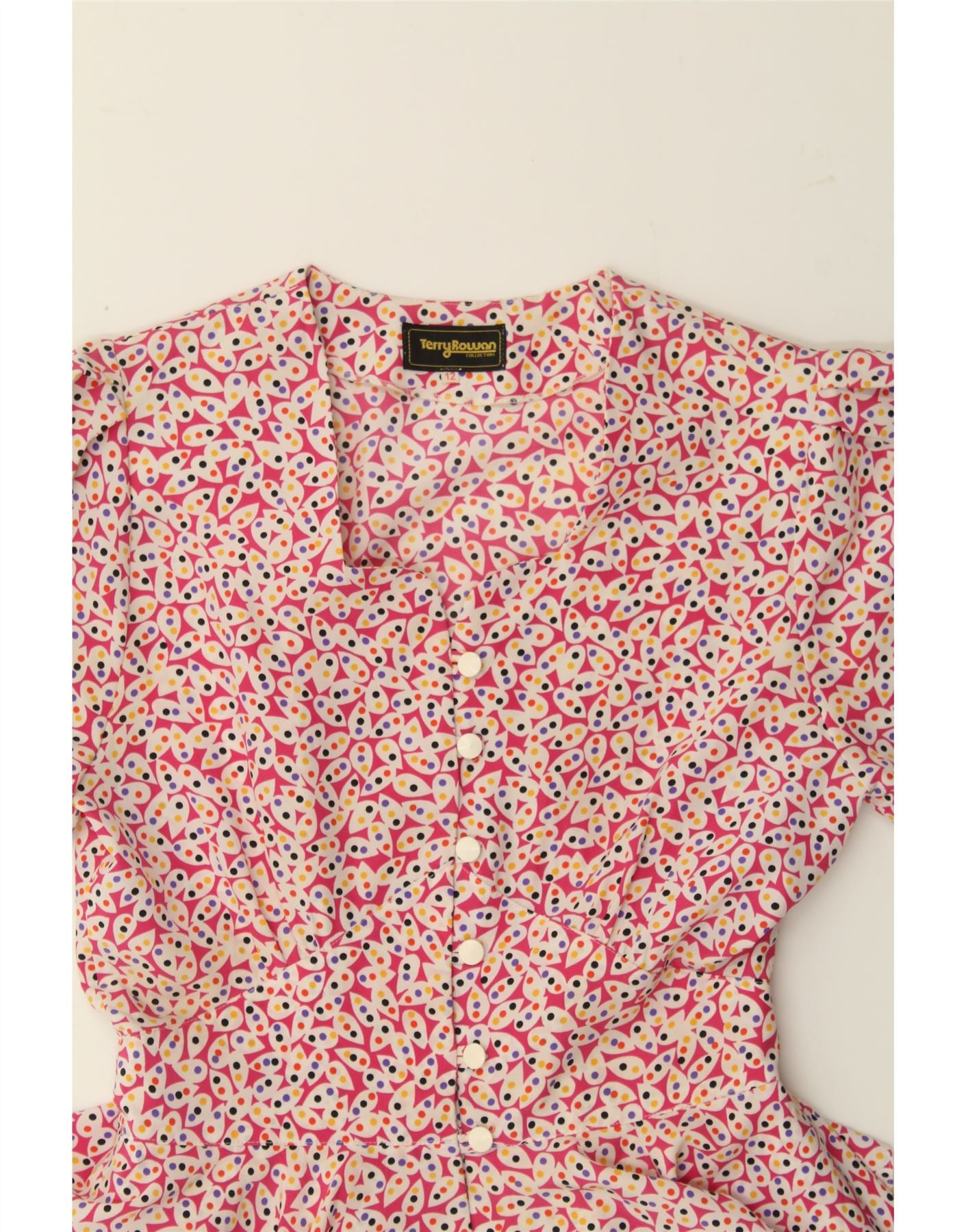 VINTAGE Womens Abstract Pattern Peplum Dress UK 12 Medium Pink