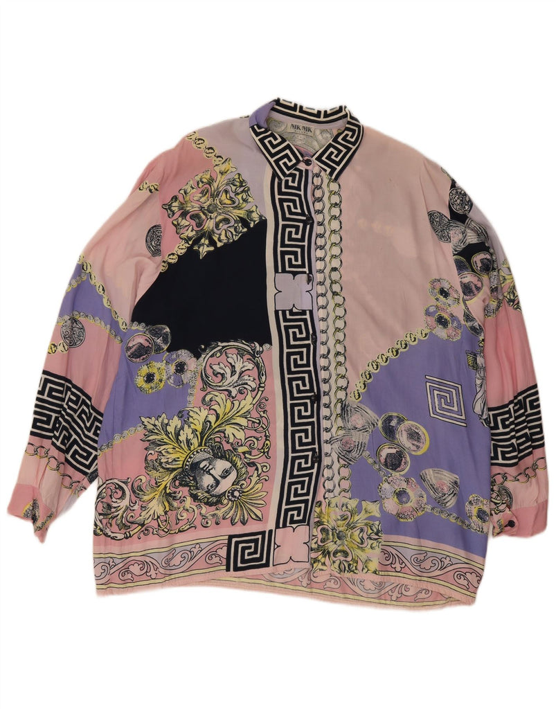 VINTAGE Womens Abstract Pattern Shirt Blouse UK 18 XL Pink Colourblock