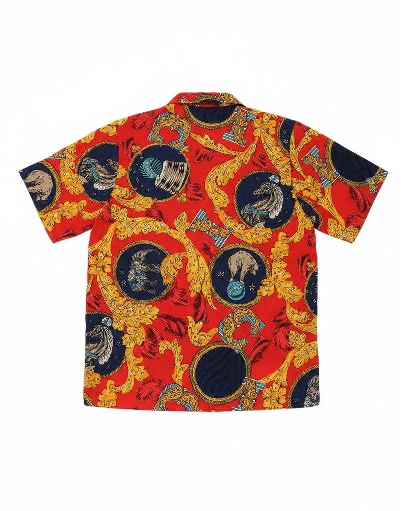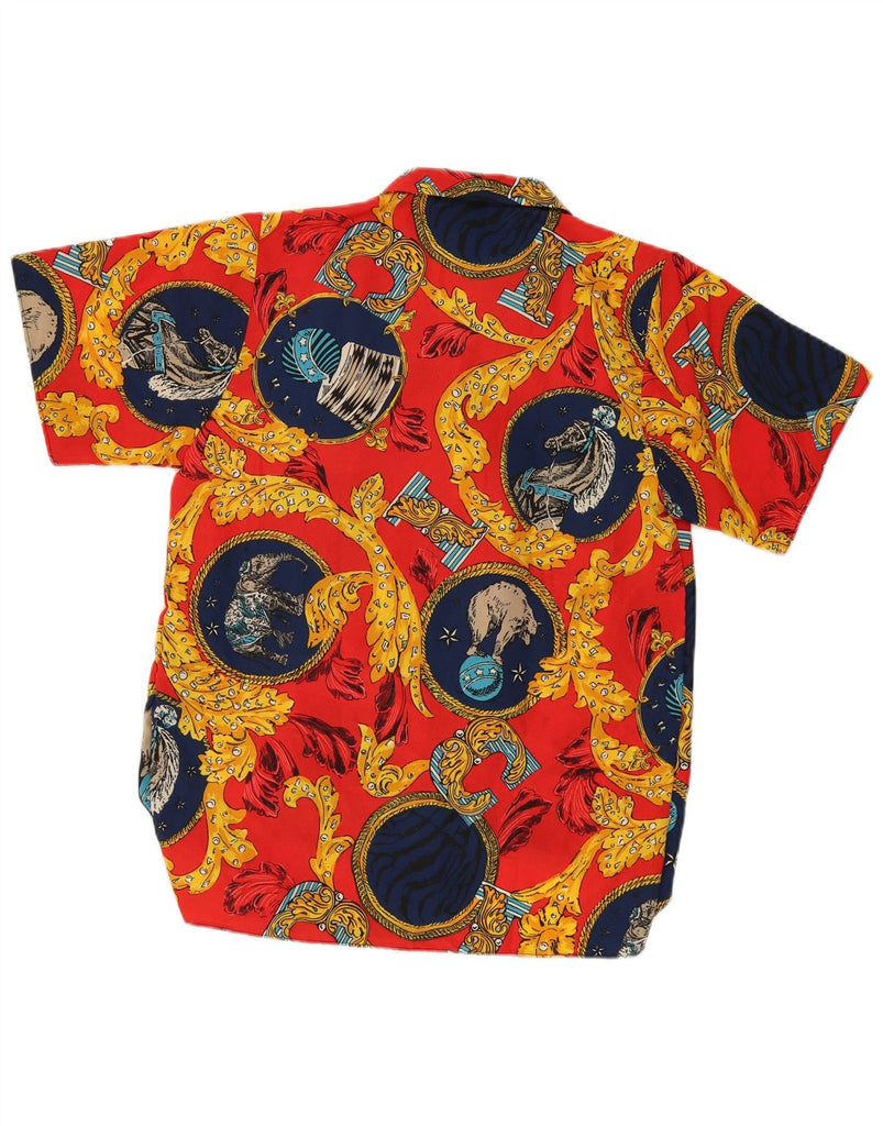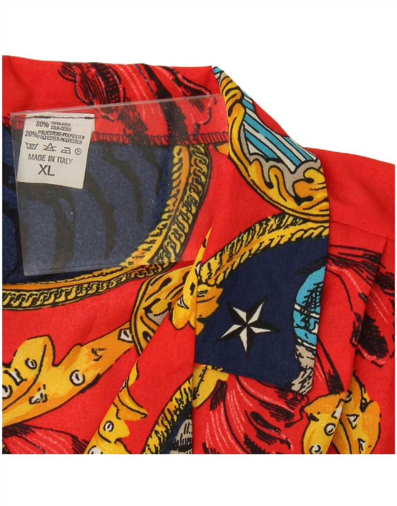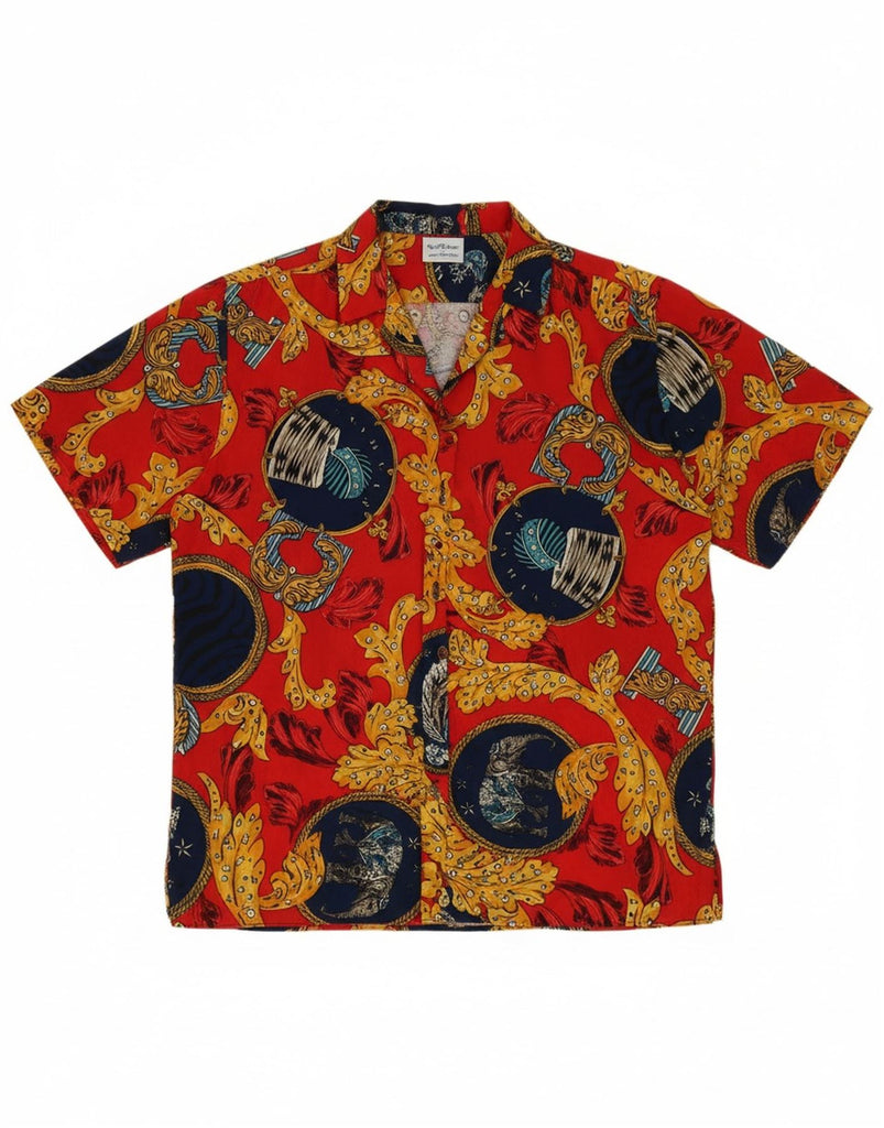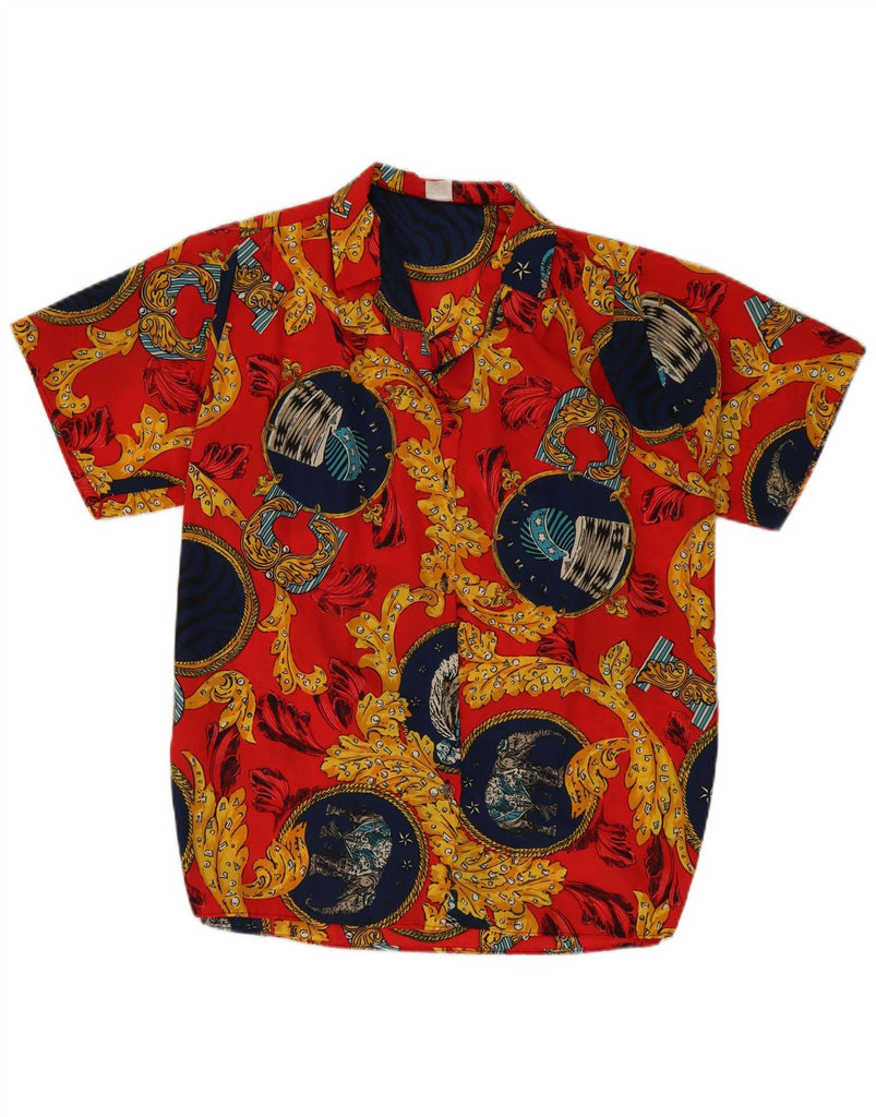 VINTAGE Womens Abstract Pattern Short Sleeve Shirt UK 18 XL Red Silk