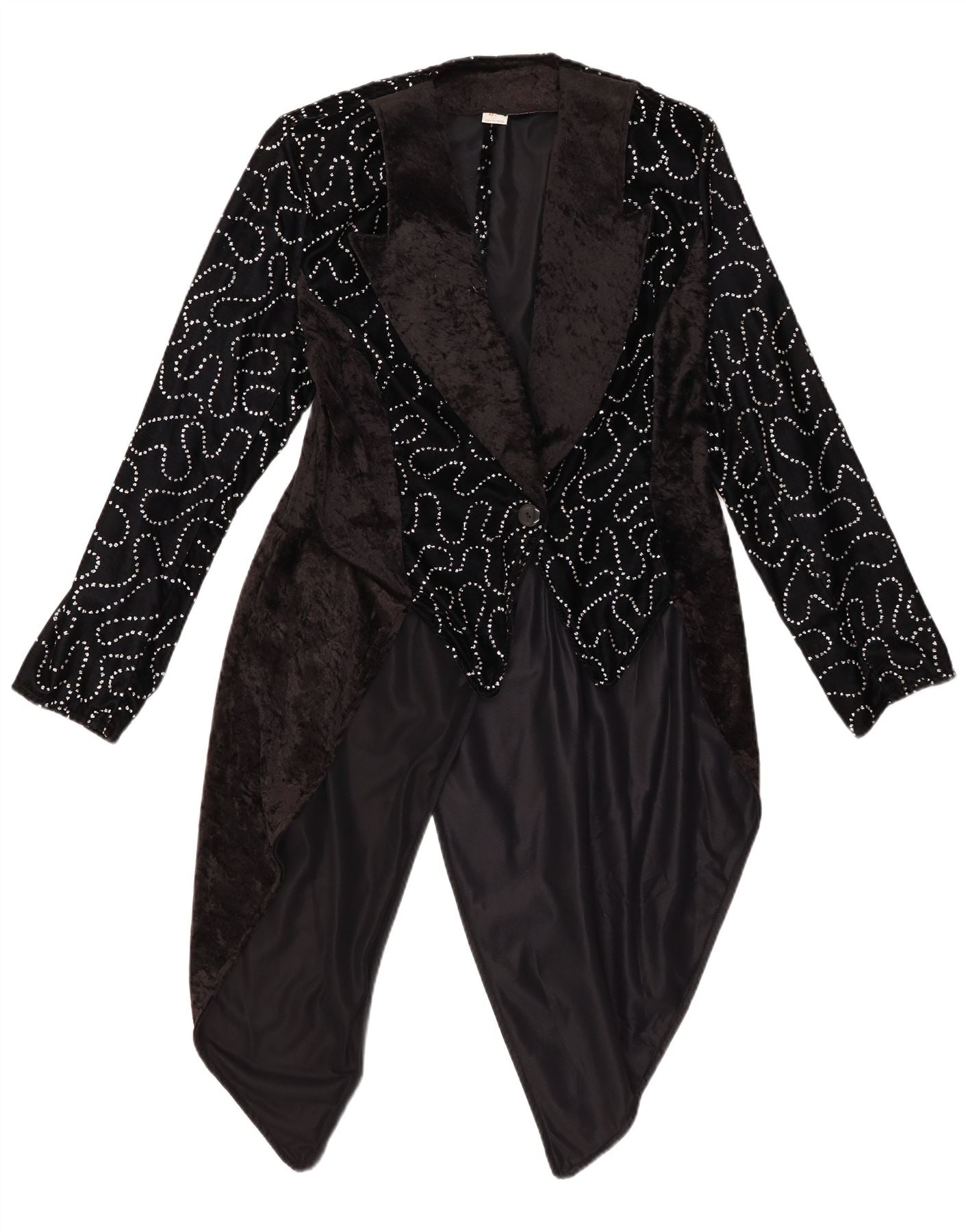 VINTAGE Womens Abstract Pattern Tailcoat Blazer Jacket IT 42 Medium Black