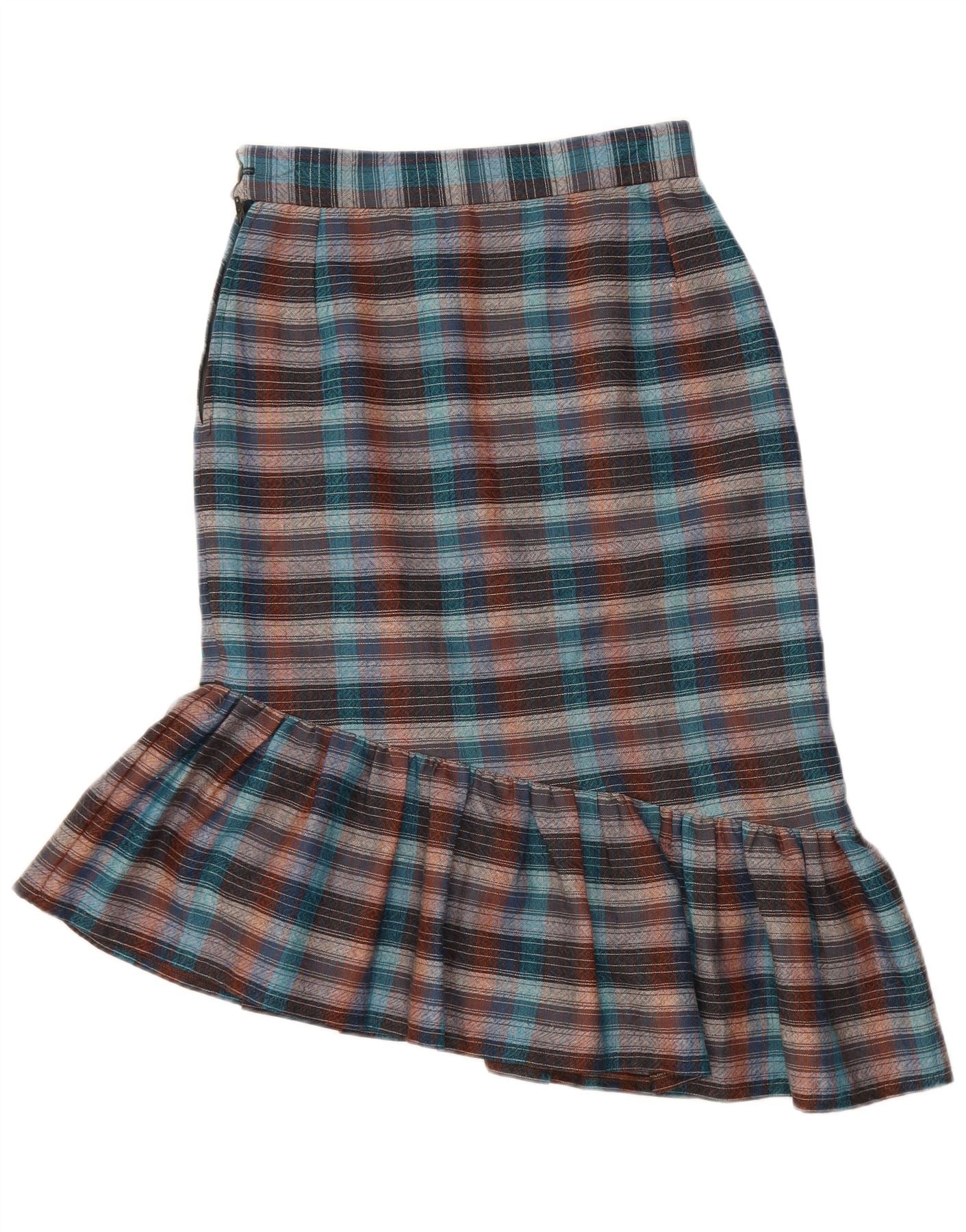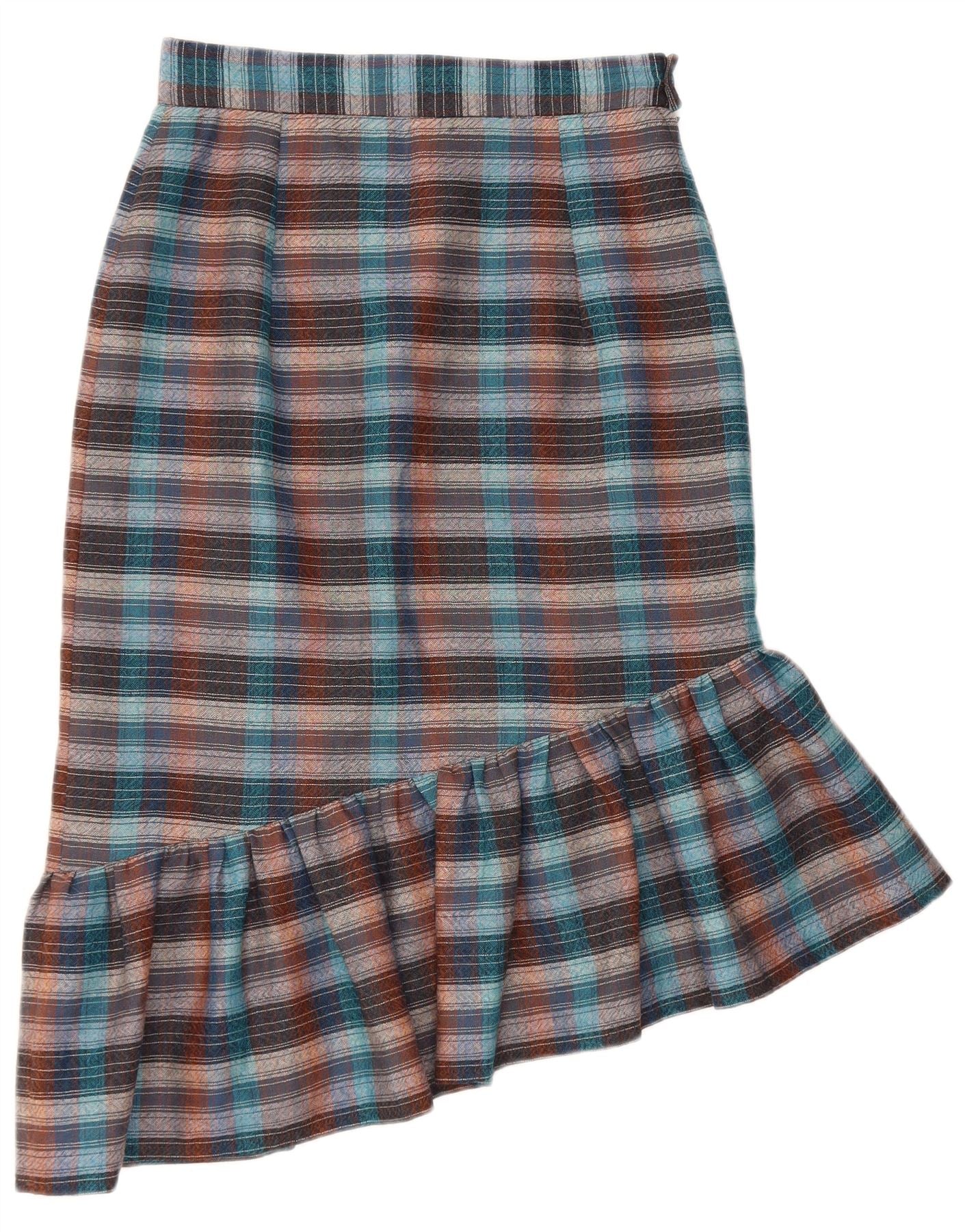 VINTAGE Womens Asymmetric Trumpet Skirt W26 Small Multicoloured Check