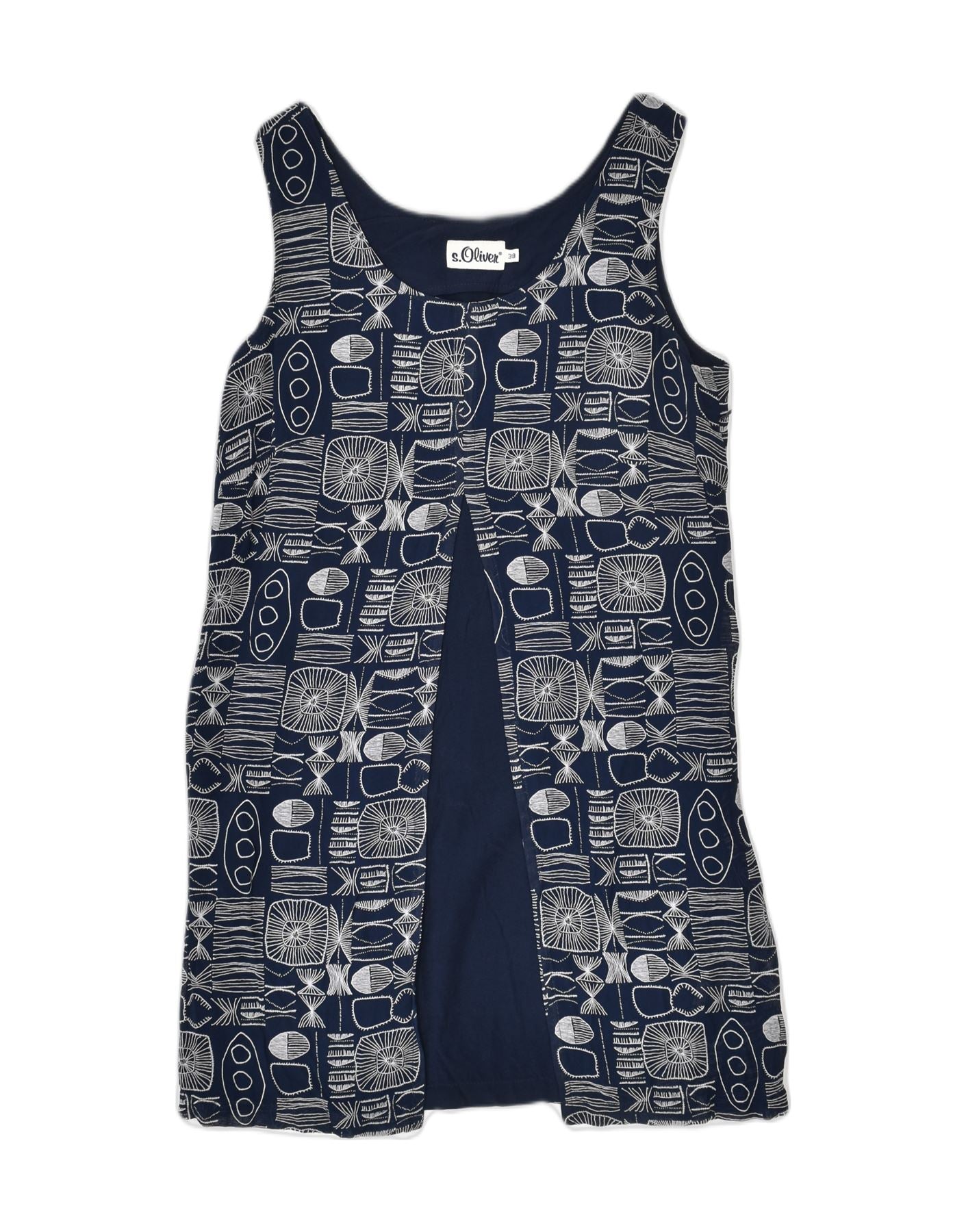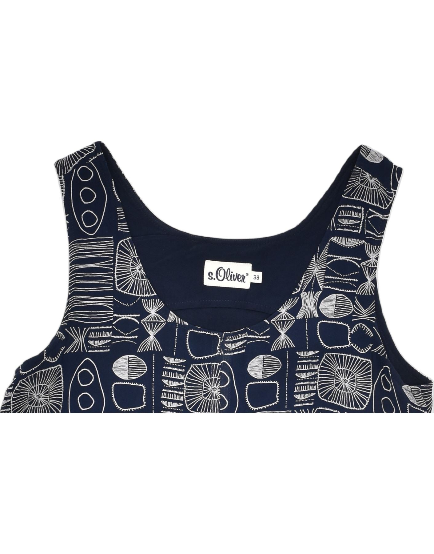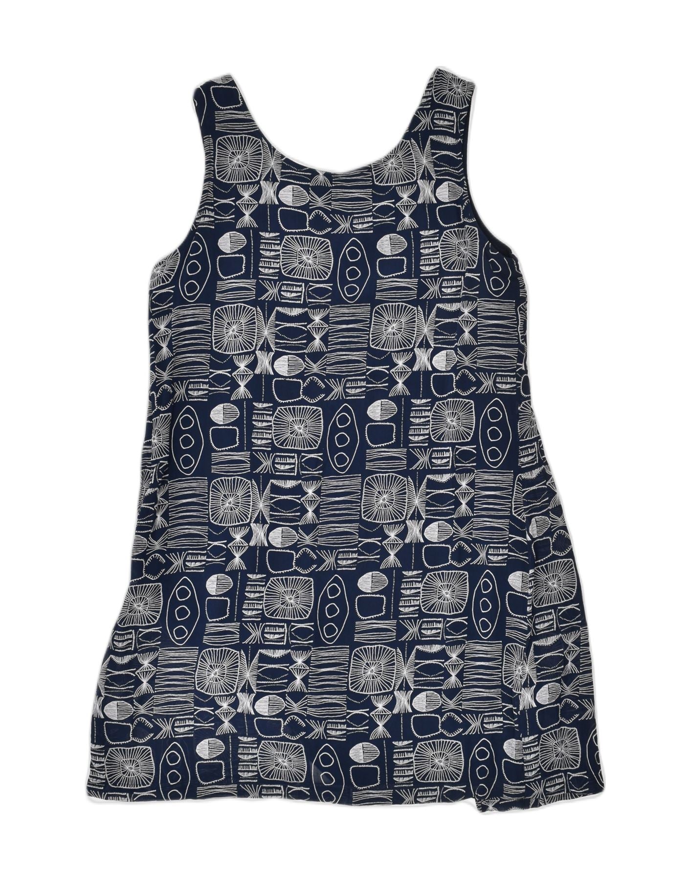 VINTAGE Womens Basic Dress EU 38 Small Navy Blue Geometric Viscose