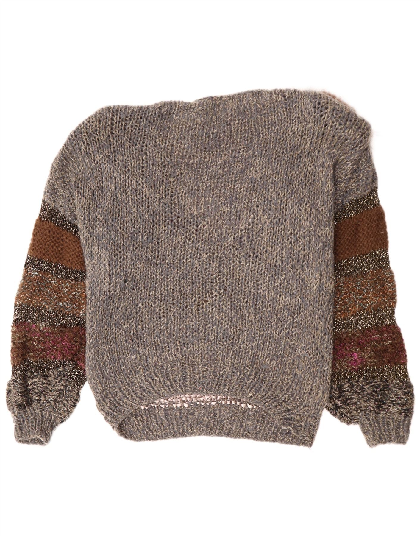 VINTAGE Womens Boat Neck Jumper Sweater EU 40/42 Medium Grey Colourblock