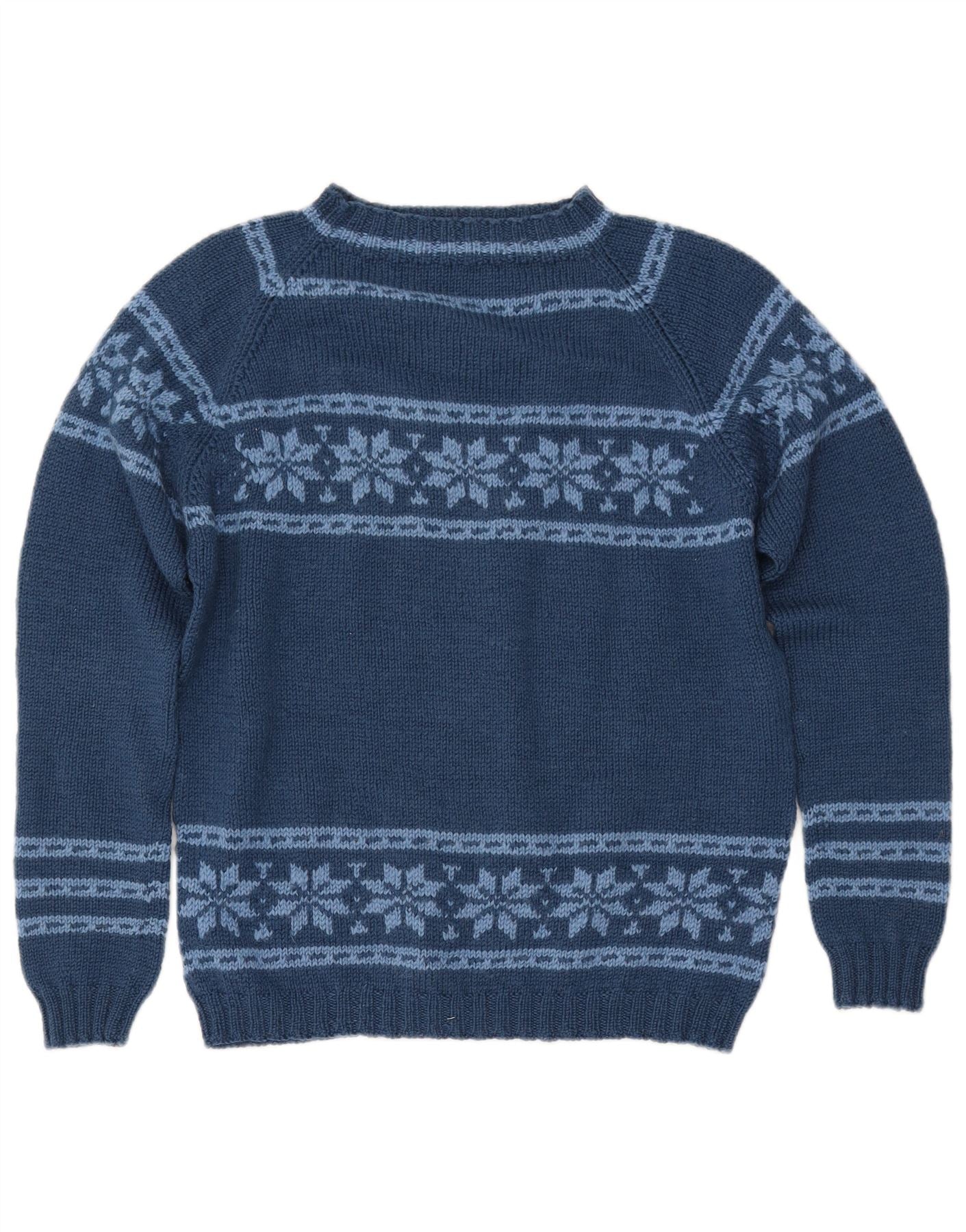 VINTAGE Womens Boat Neck Jumper Sweater UK 12 Medium Navy Blue Fair Isle