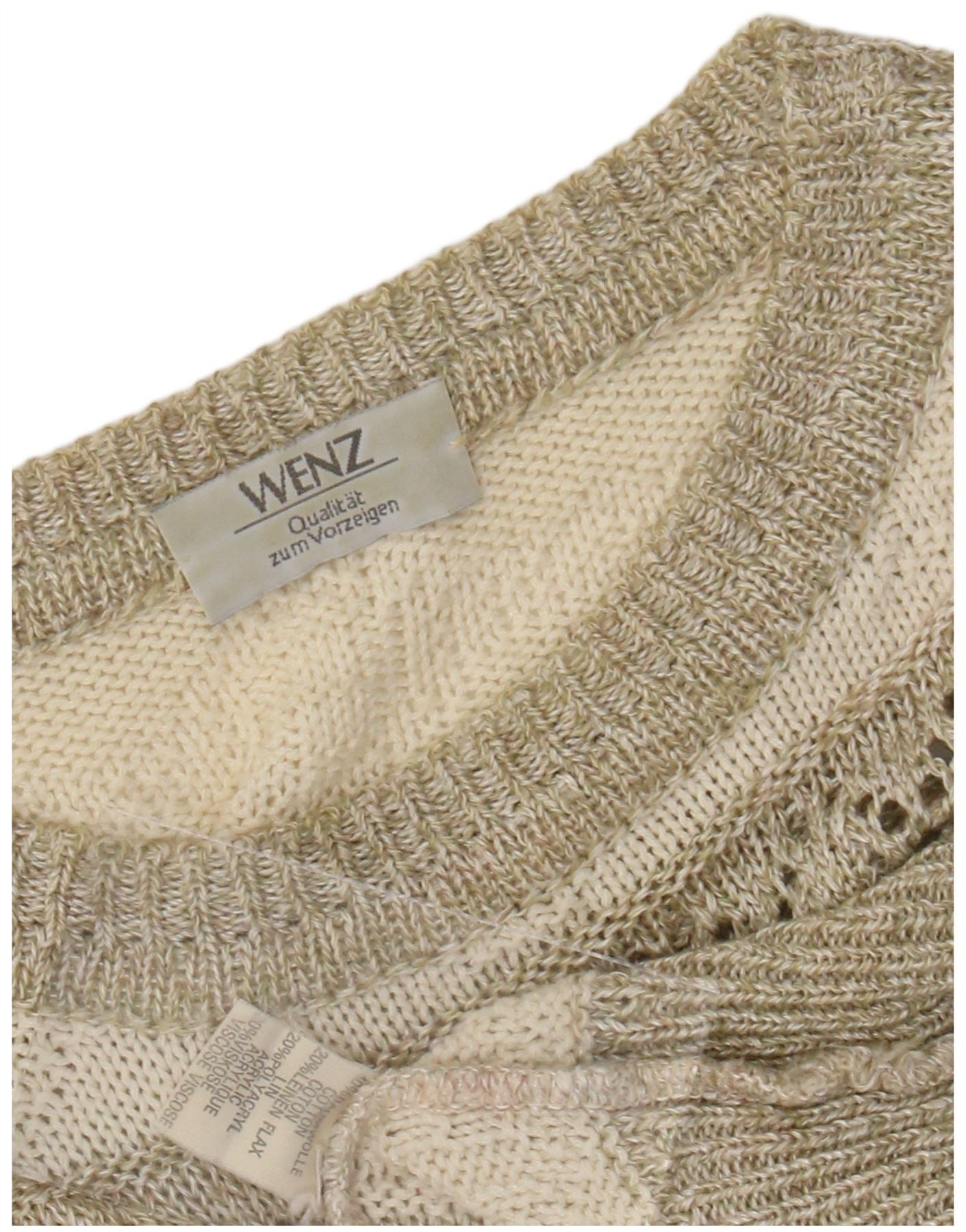 VINTAGE Womens Boat Neck Jumper Sweater UK 14 Large Beige Striped Cotton