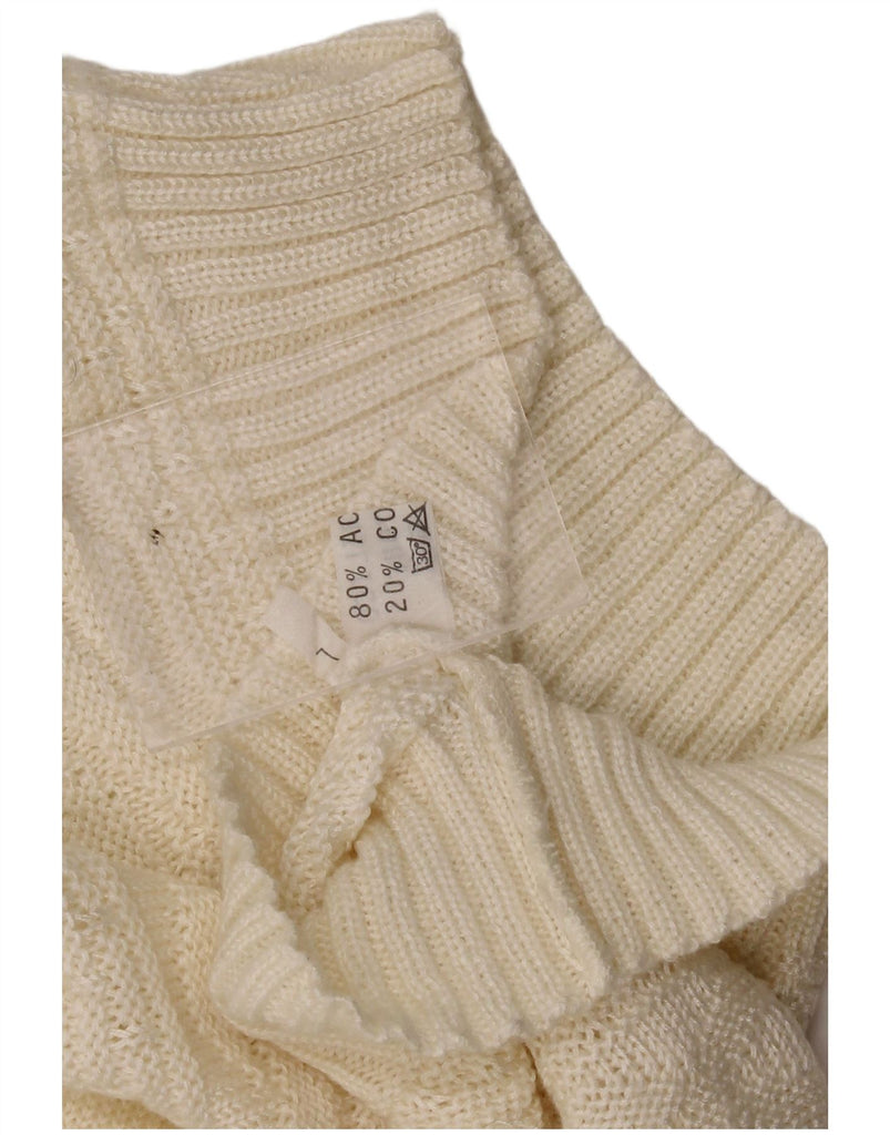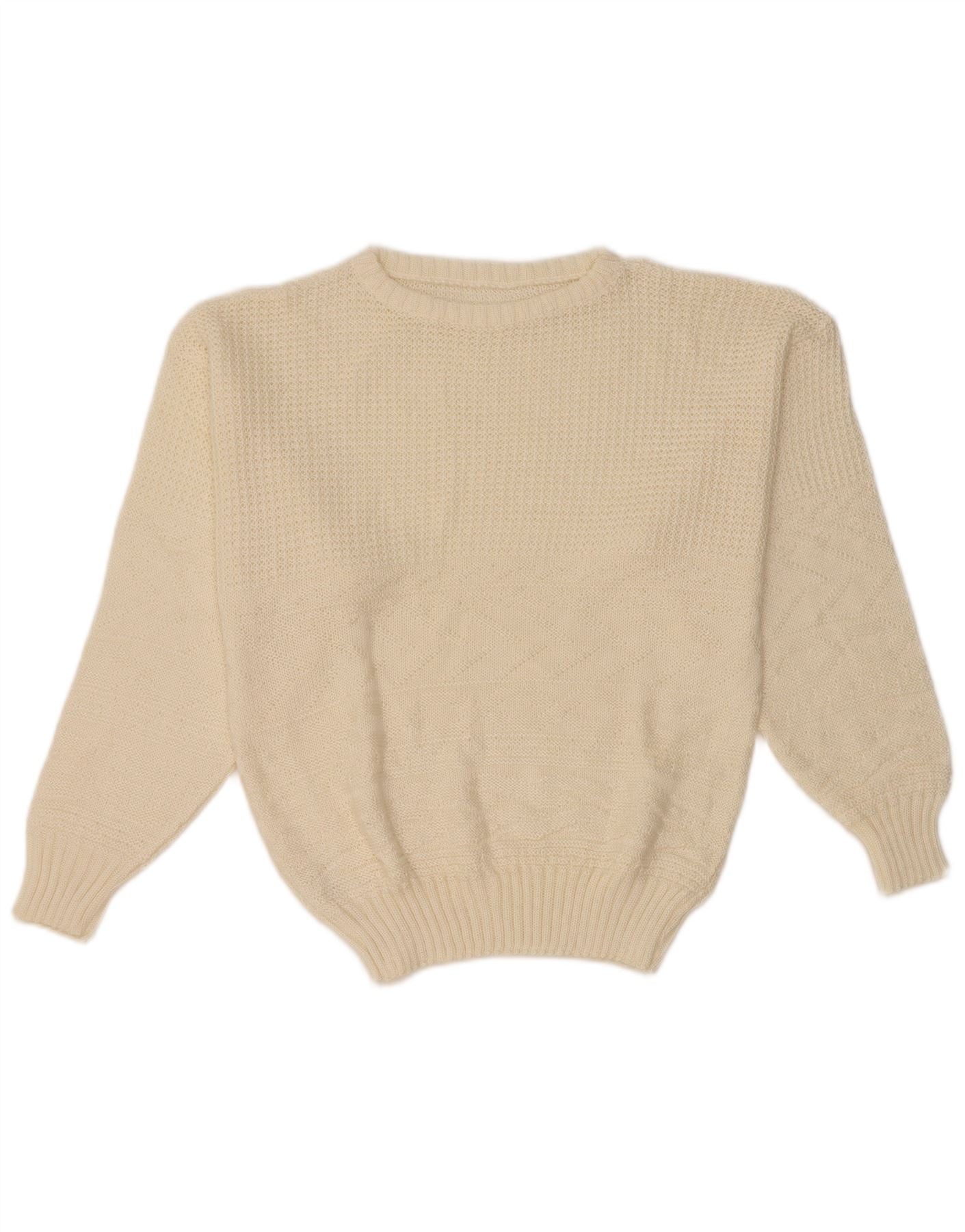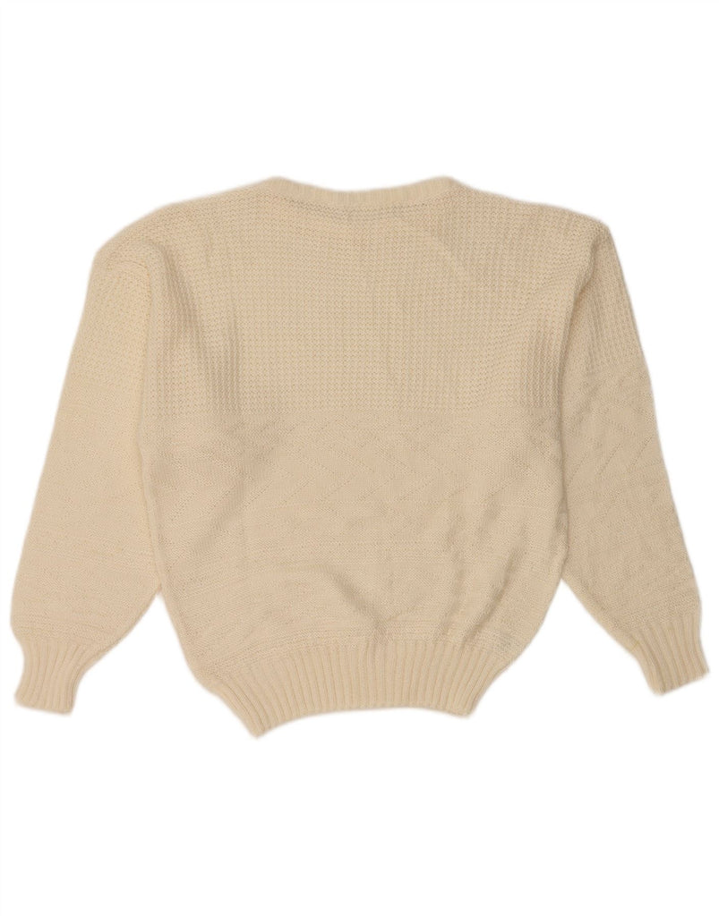 VINTAGE Womens Boat Neck Jumper Sweater UK 14 Large Off White Acrylic