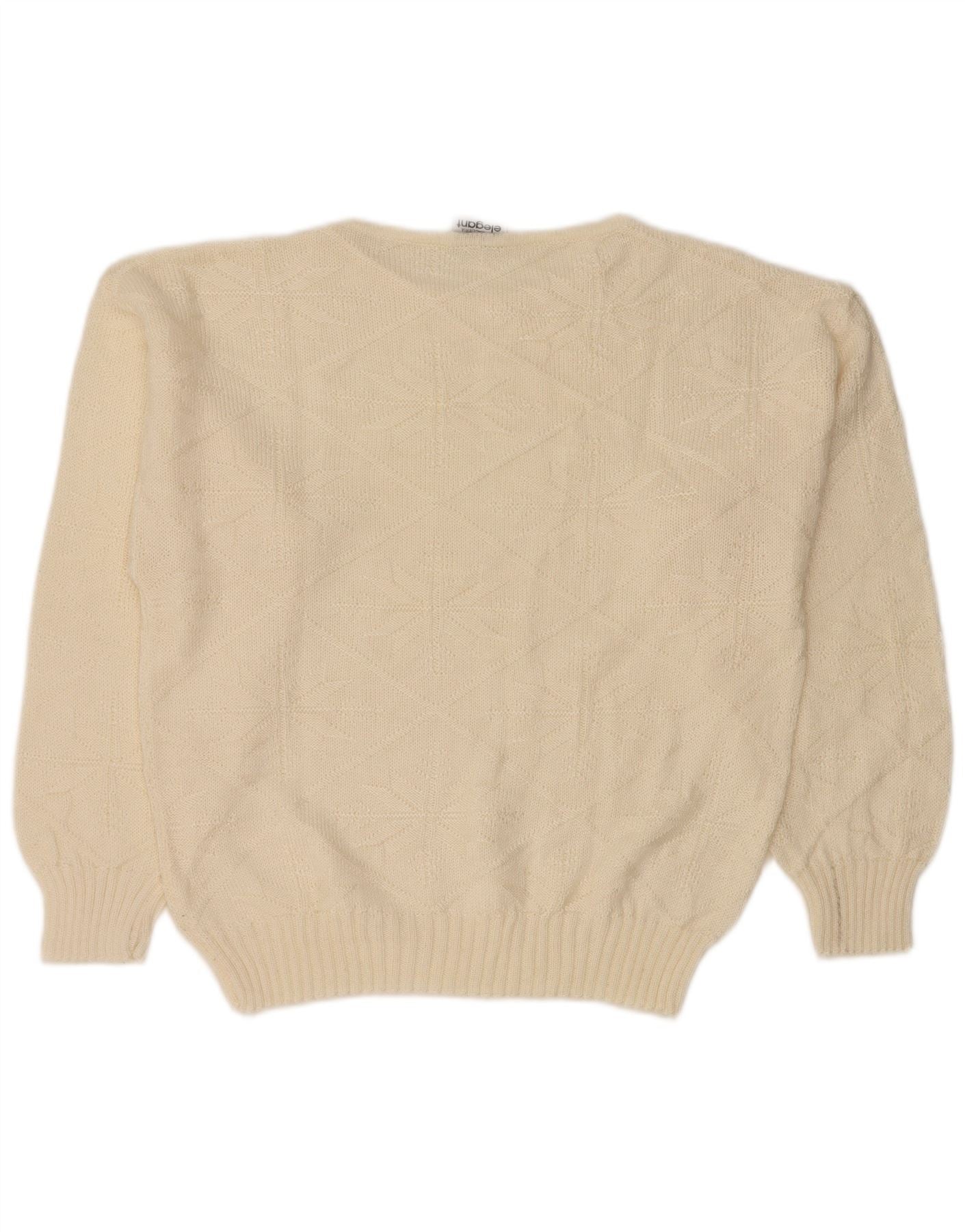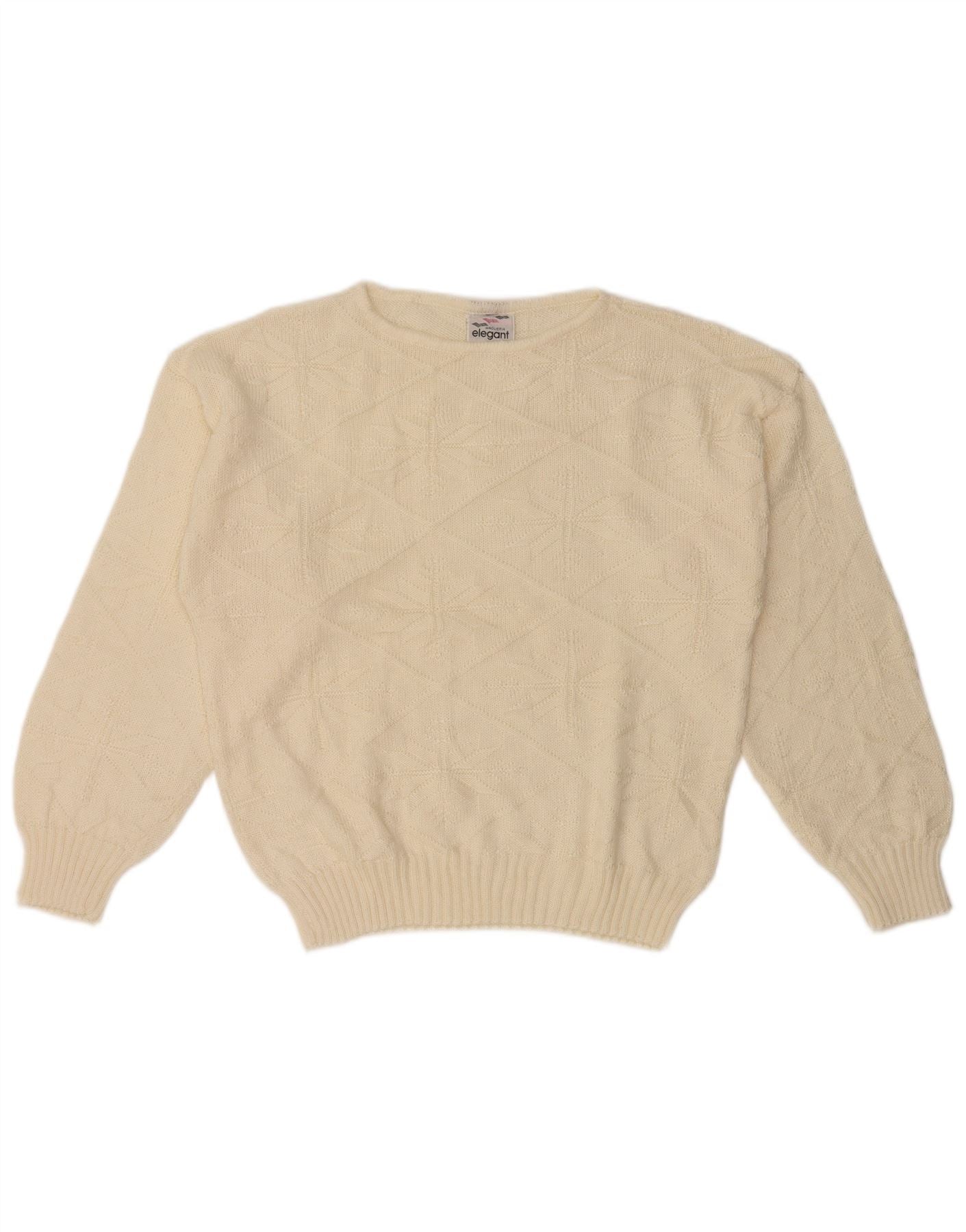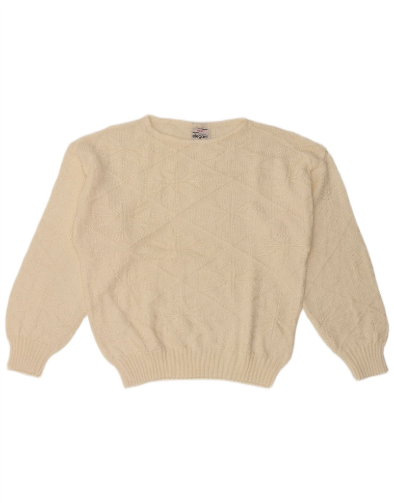 VINTAGE Womens Boat Neck Jumper Sweater UK 14 Large Off White Fair Isle