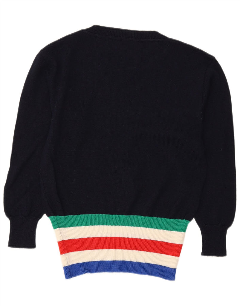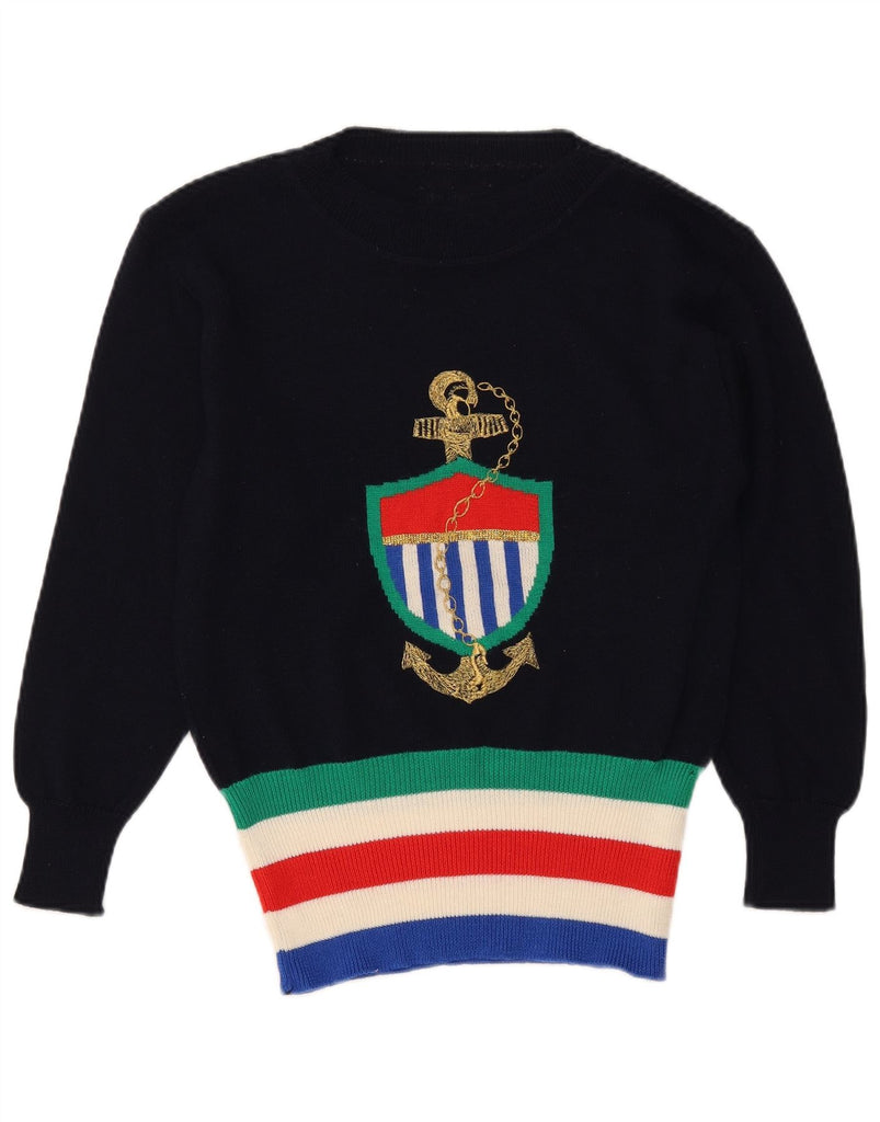 VINTAGE Womens Boat Neck Jumper Sweater UK 14 Medium Navy Blue Nautical
