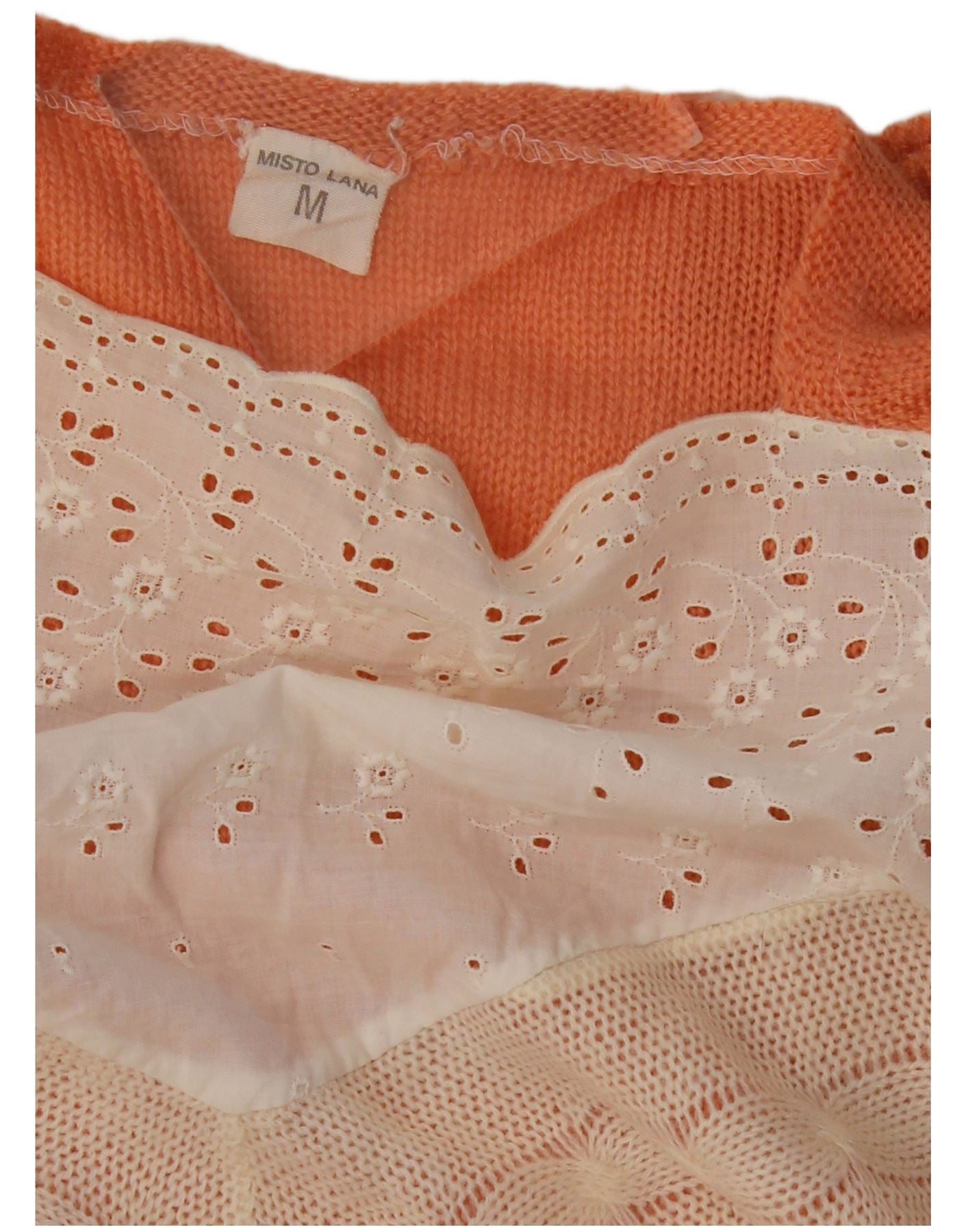 VINTAGE Womens Boat Neck Jumper Sweater UK 14 Medium Orange Colourblock
