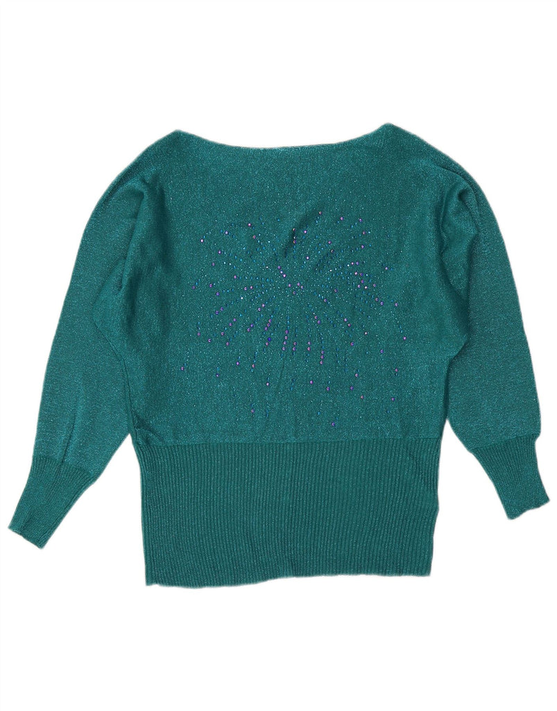 VINTAGE Womens Boat Neck Jumper Sweater UK 16 Large Green Flecked Wool