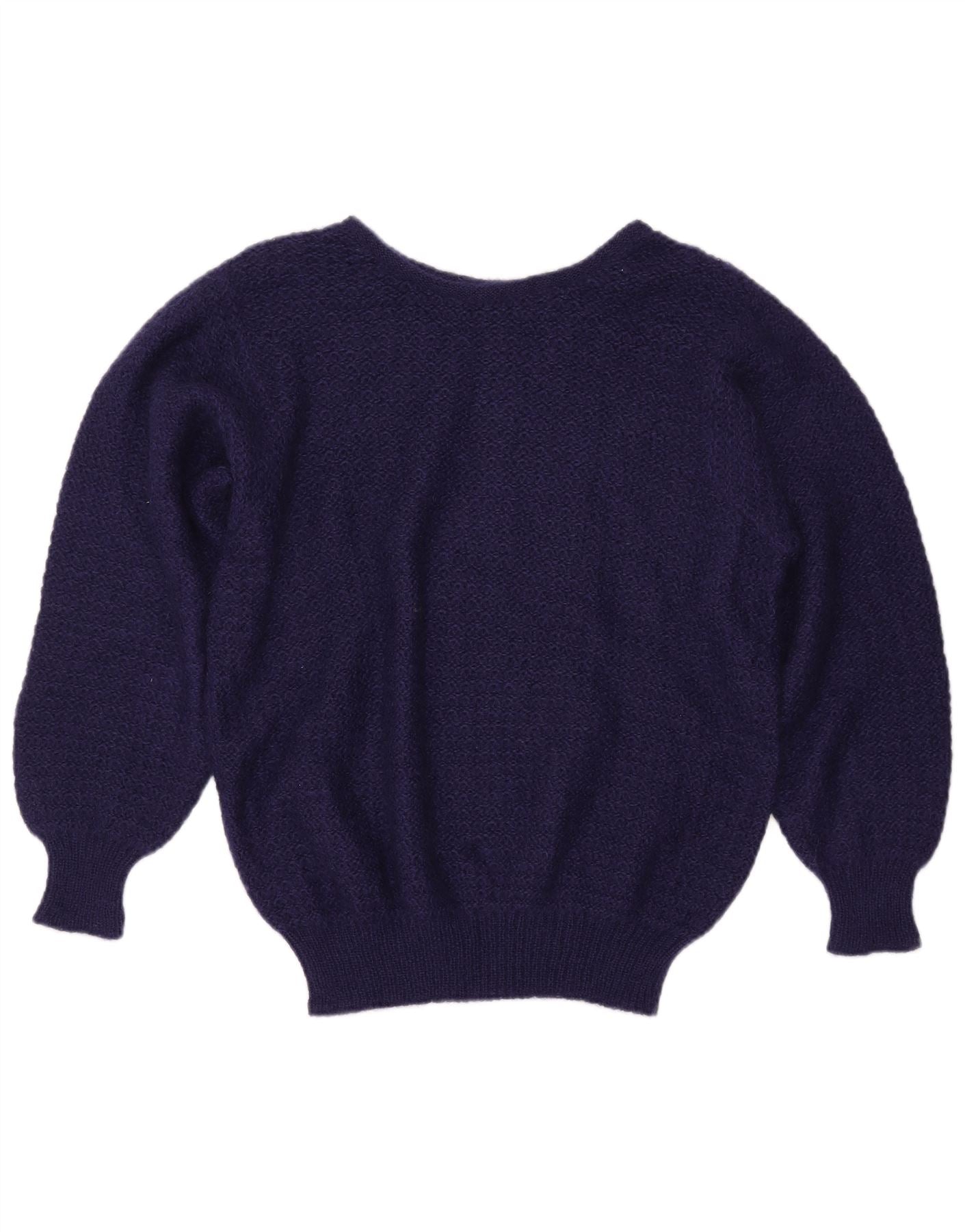 VINTAGE Womens Boat Neck Jumper Sweater UK 16 Large Navy Blue Mohair