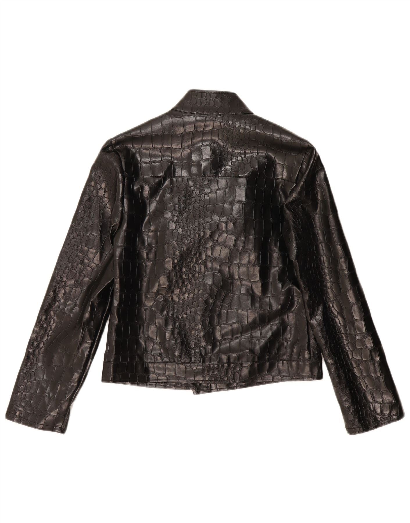 Vintage Womens Bomber Jacket UK 14 Large Black Animal Print
