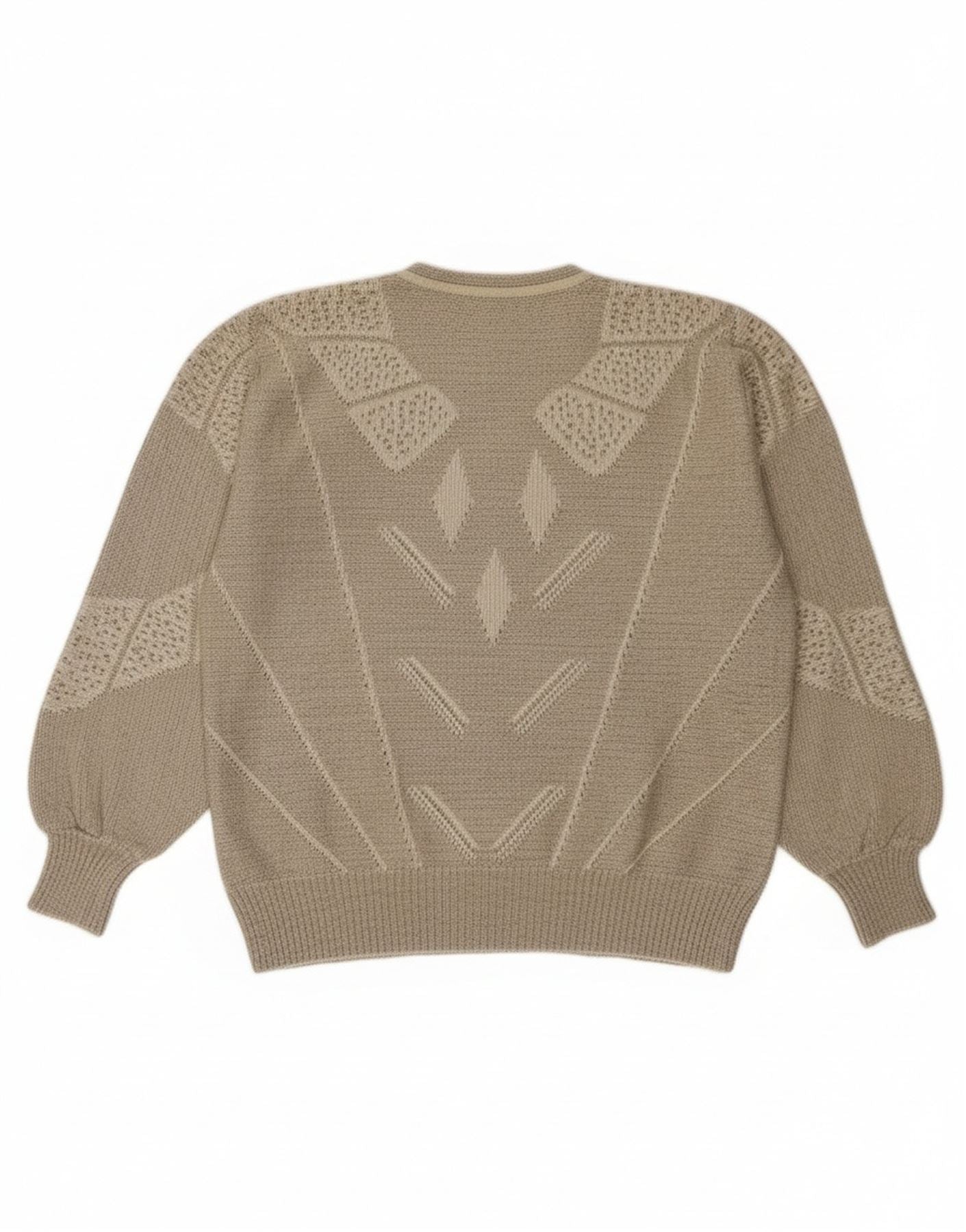 Vintage Womens Button Neck Jumper Sweater UK 14 Large Grey Geometric