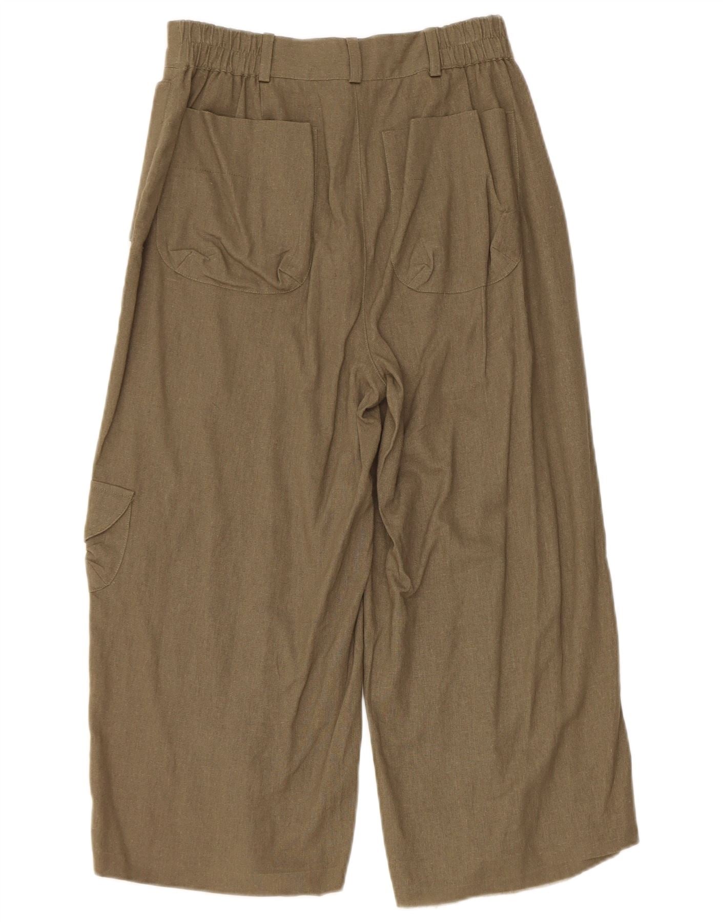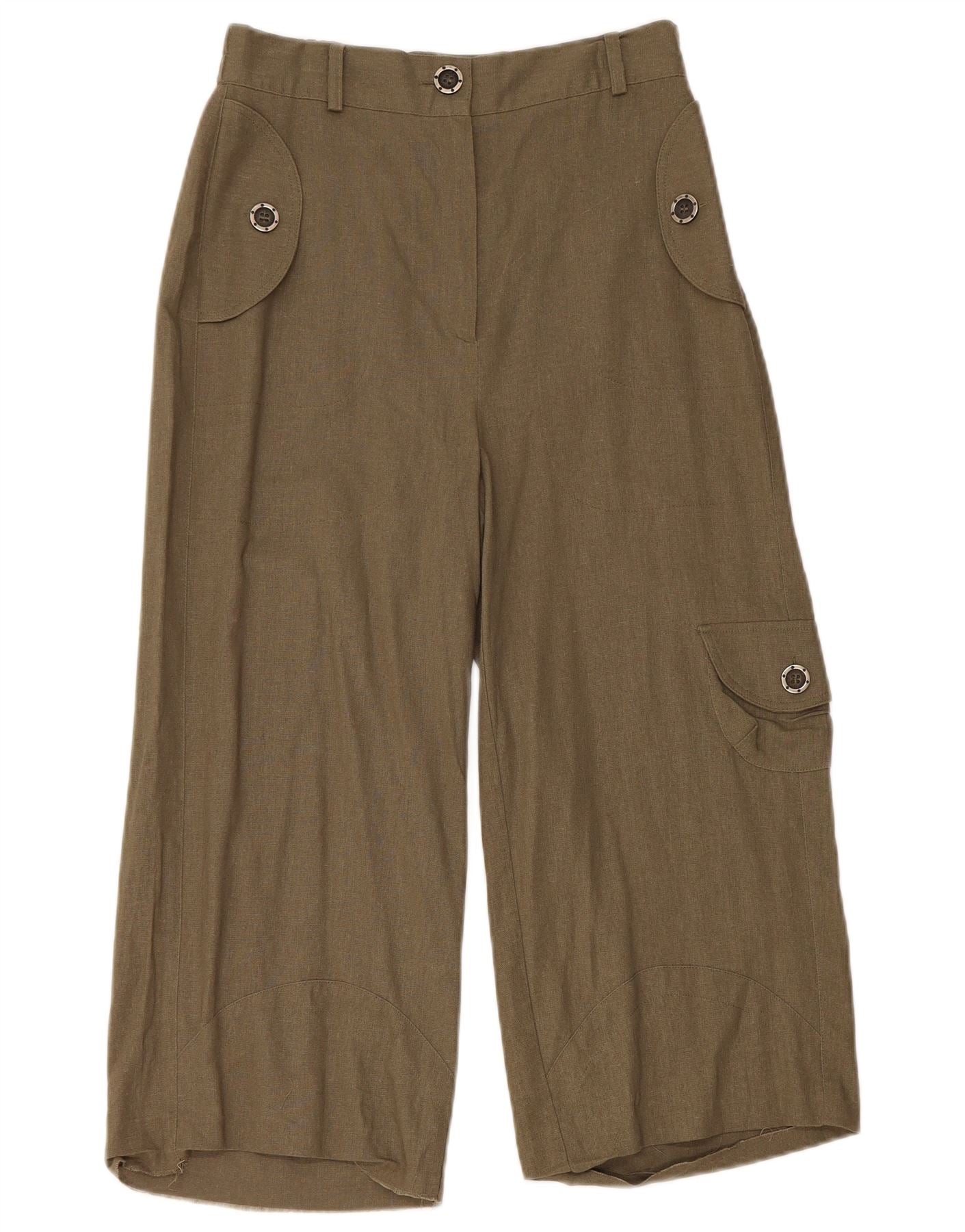 VINTAGE Womens Capri Wide Leg Cargo Trousers UK 10 Small W27 L20 Khaki