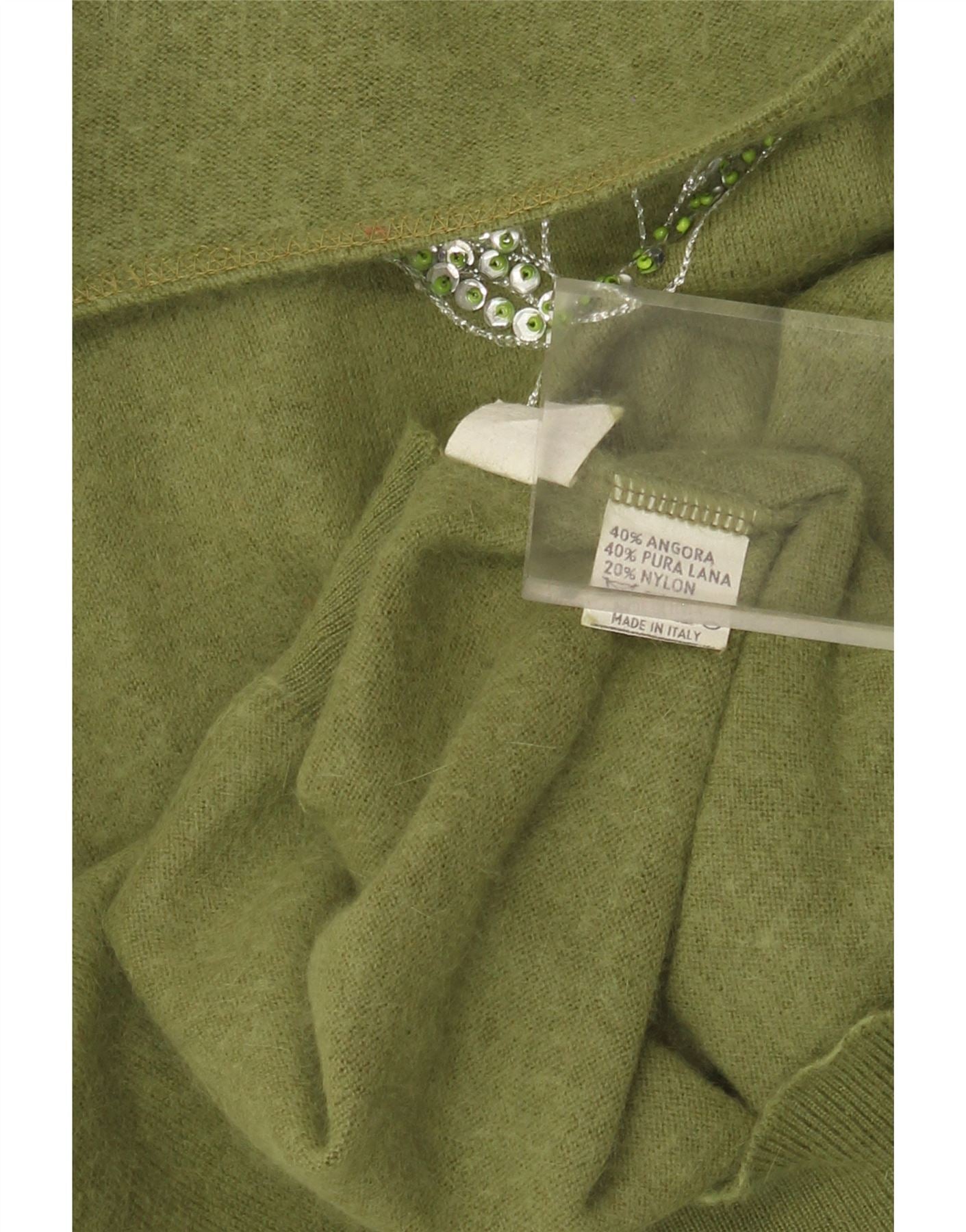 VINTAGE Womens Cardigan Sweater UK 12 Medium Green Floral Angora