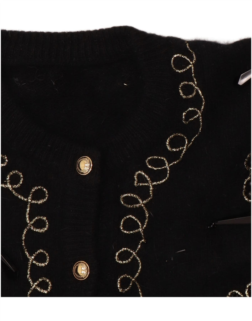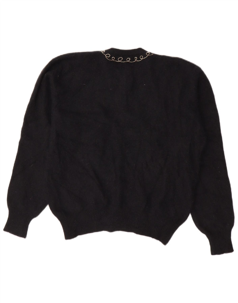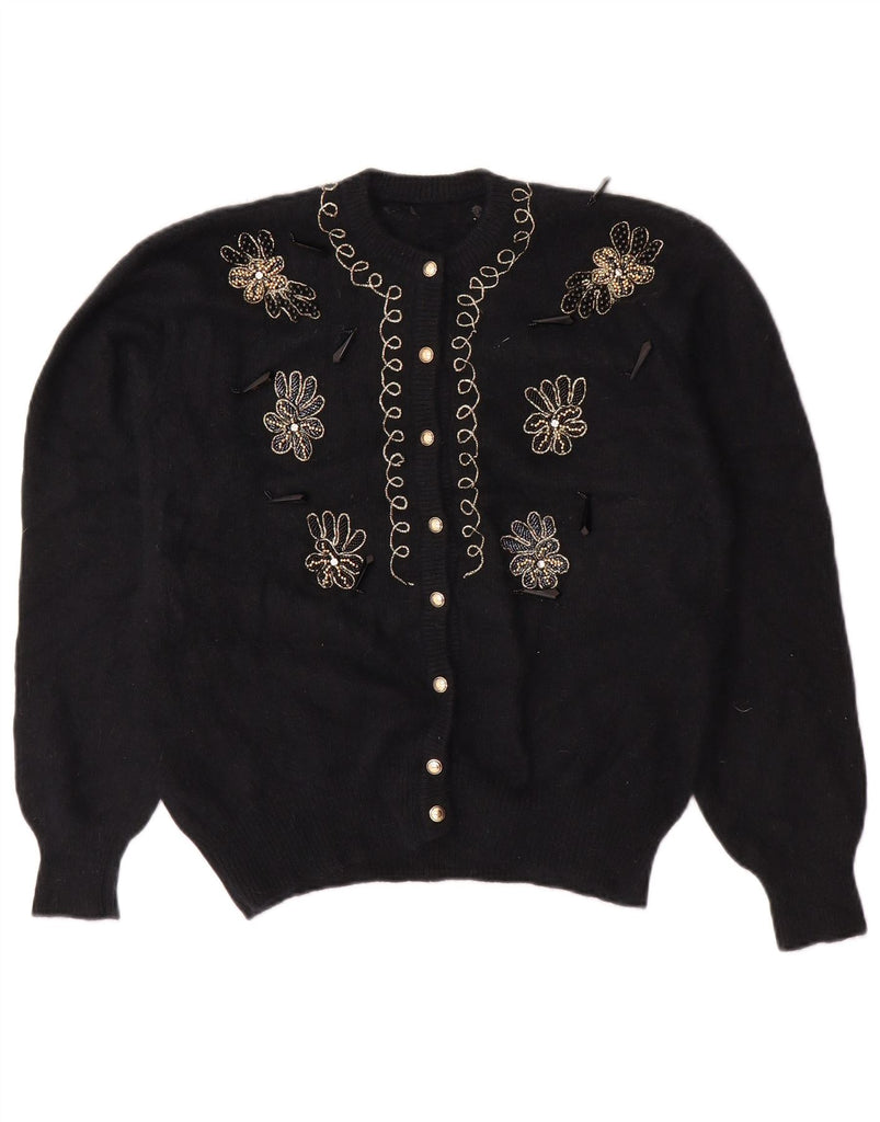 VINTAGE Womens Cardigan Sweater UK 16 Large Black Floral Angora