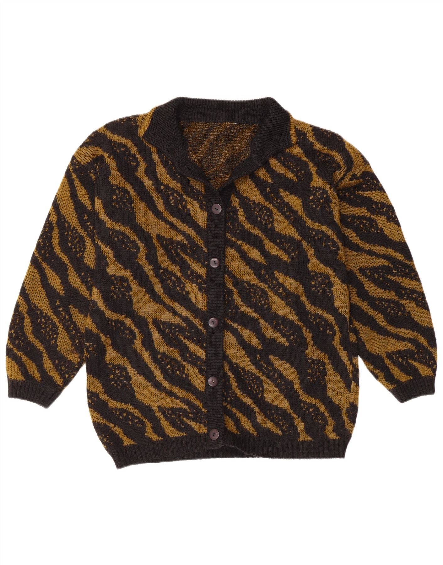 VINTAGE Womens Cardigan Sweater UK 16 Large Black Striped