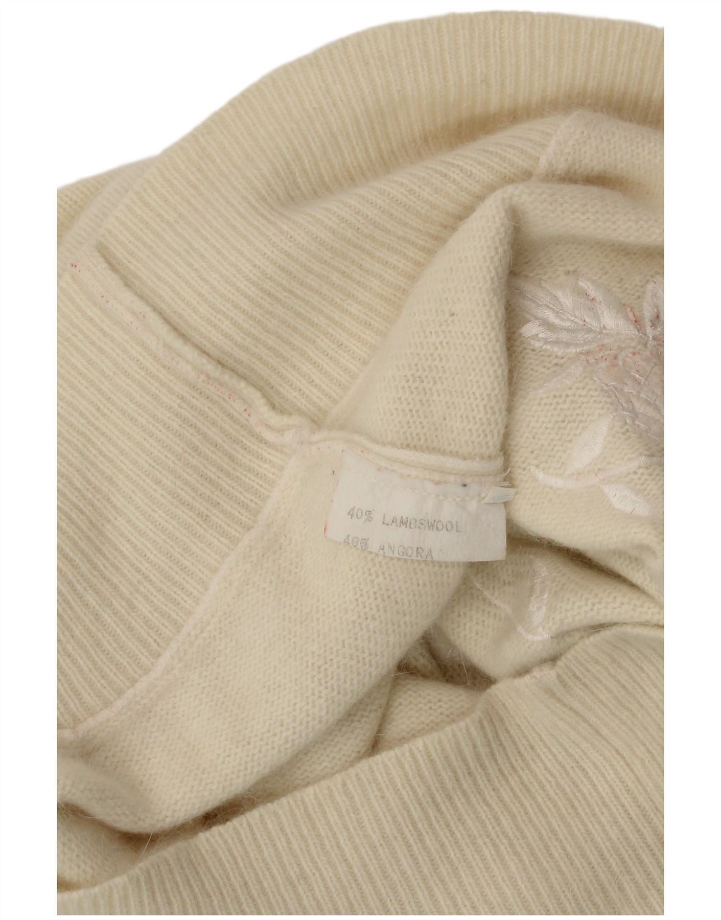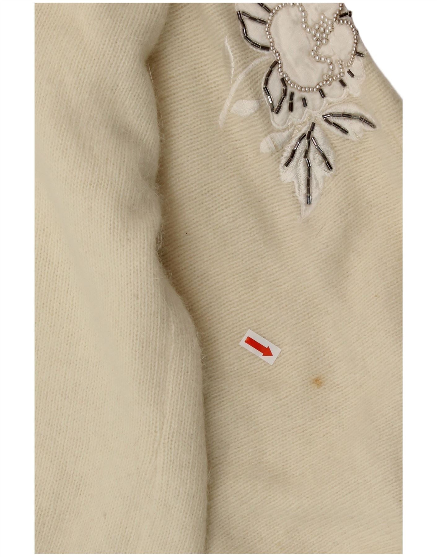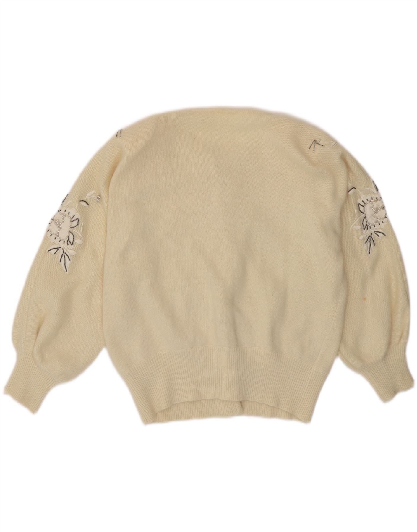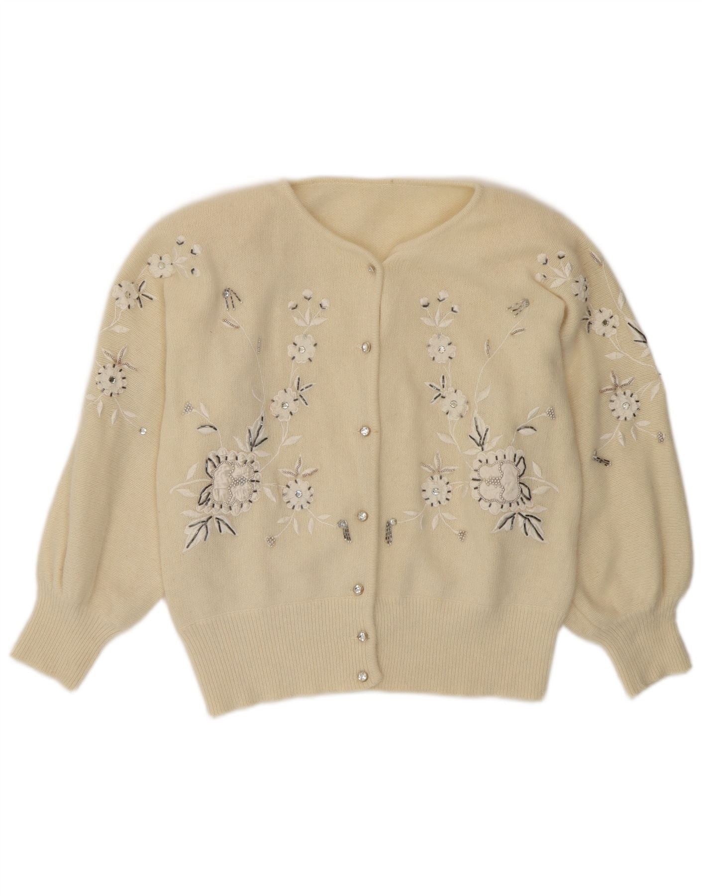 VINTAGE Womens Cardigan Sweater UK 16 Large Off White Floral Lambswool