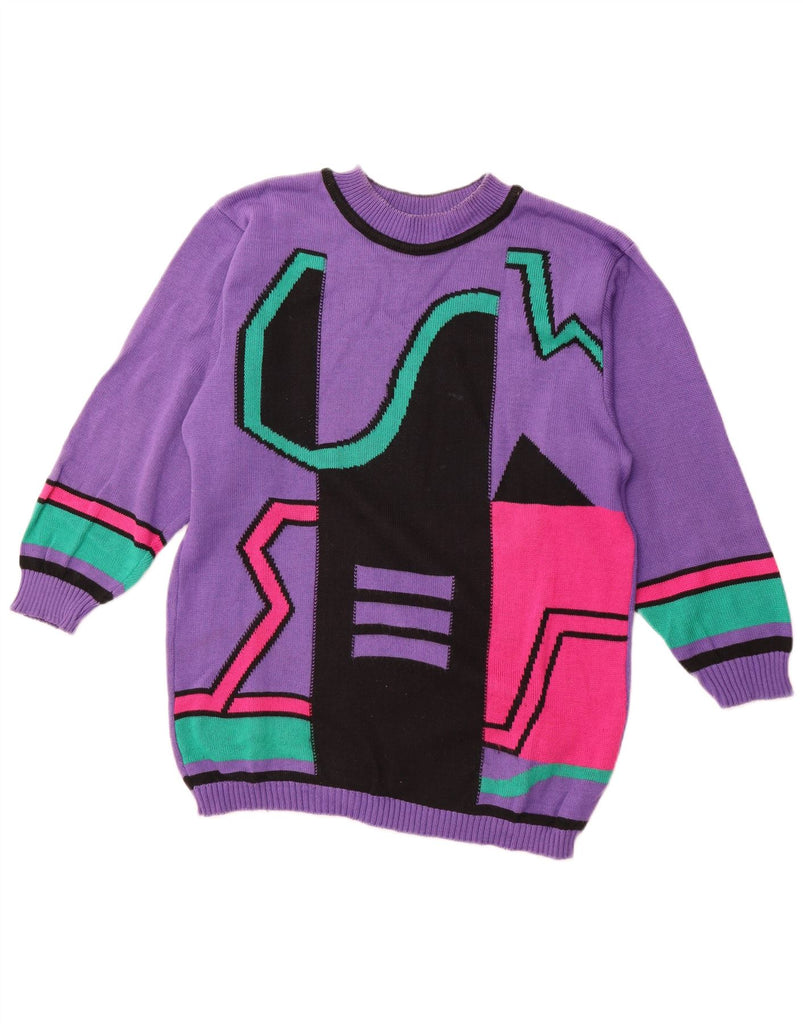 VINTAGE Womens Crew Neck Jumper Sweater EU 38/40 Medium Purple Geometric