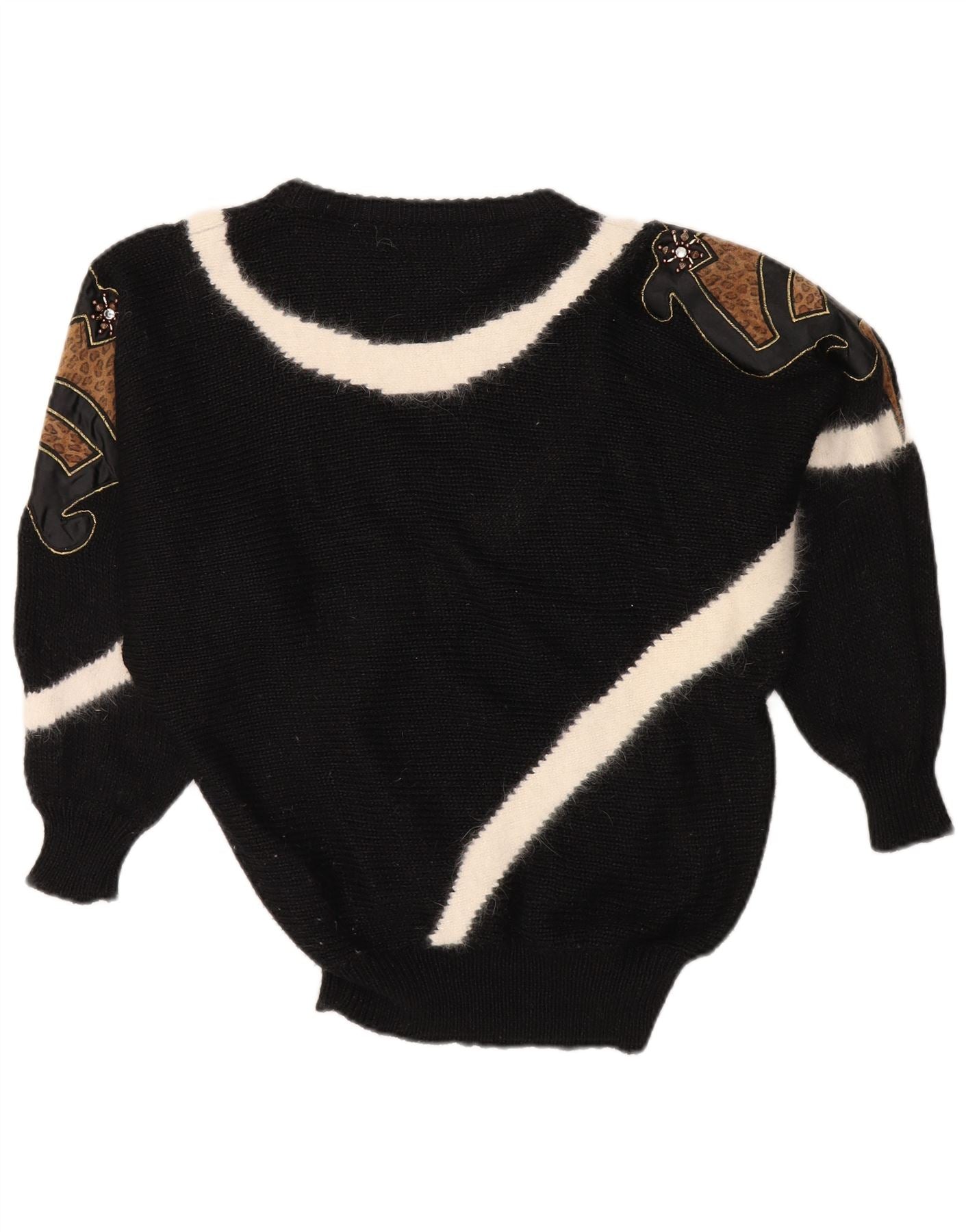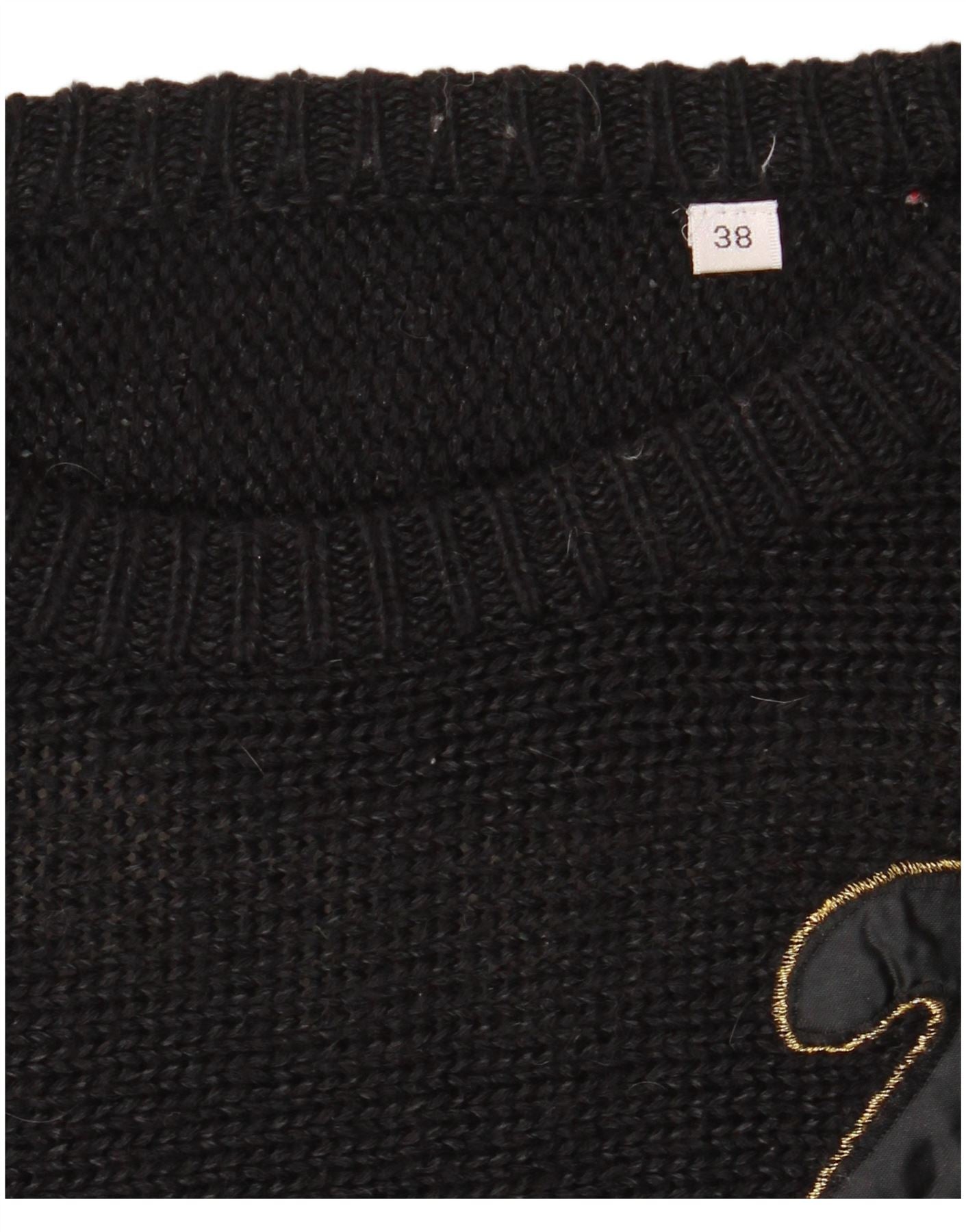 VINTAGE Womens Crew Neck Jumper Sweater EU 38 Medium Black Colourblock