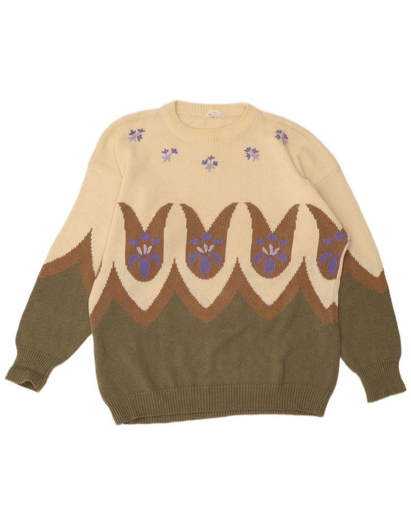 VINTAGE Womens Crew Neck Jumper Sweater EU 40/42 Medium Green Colourblock