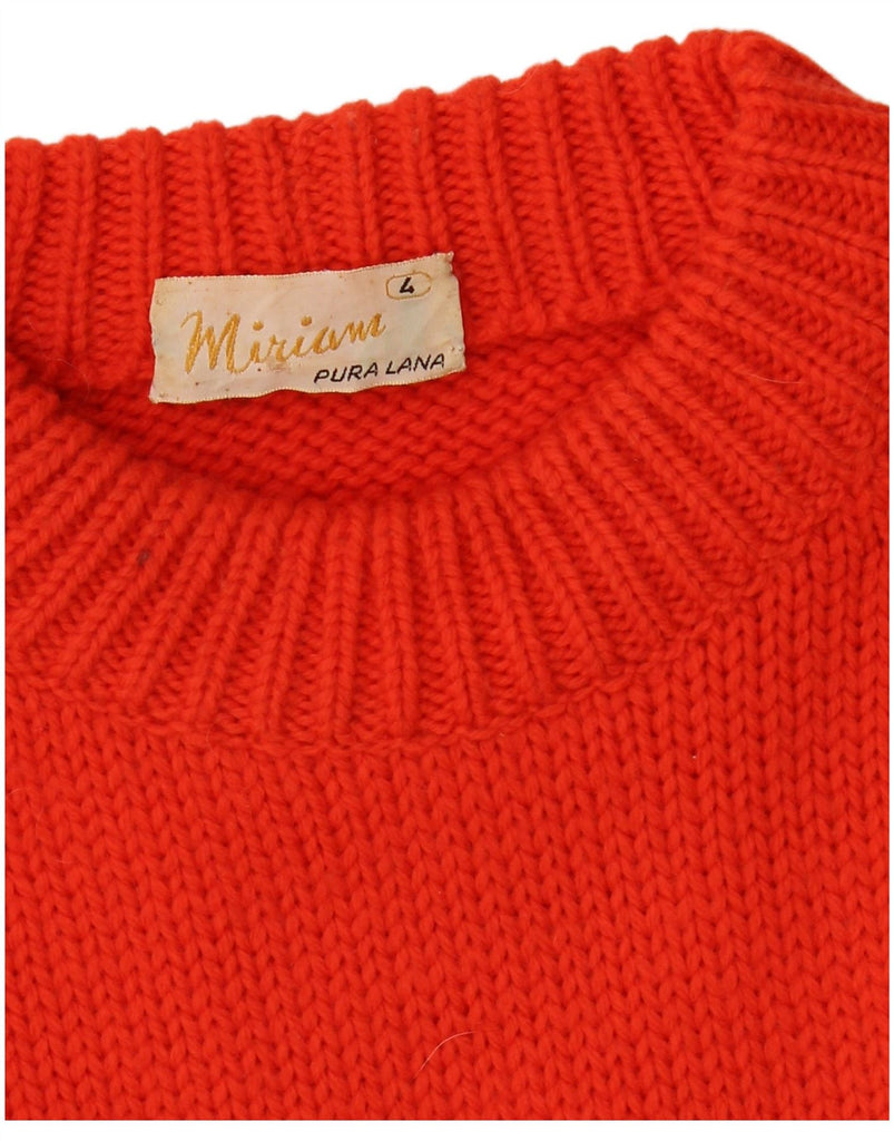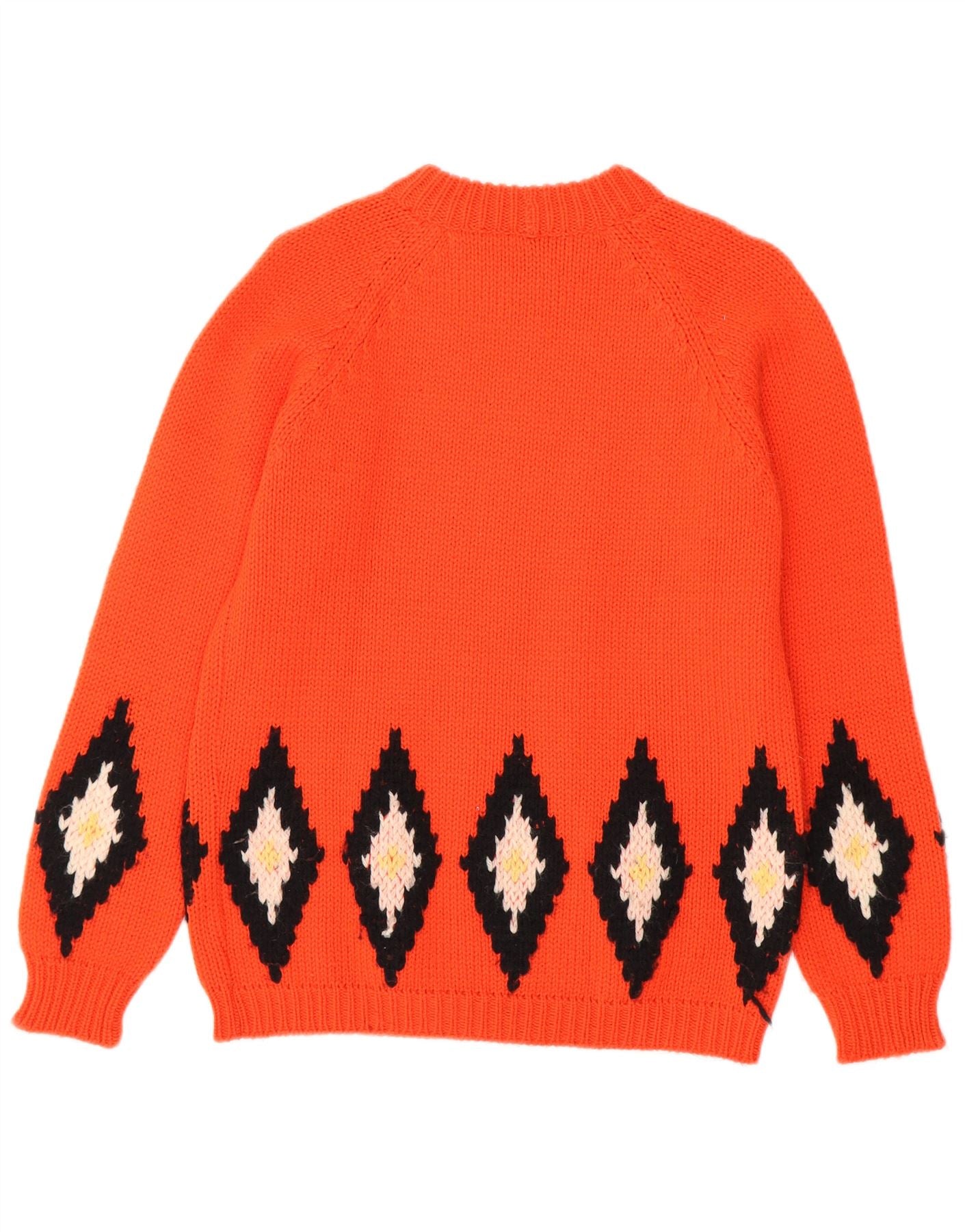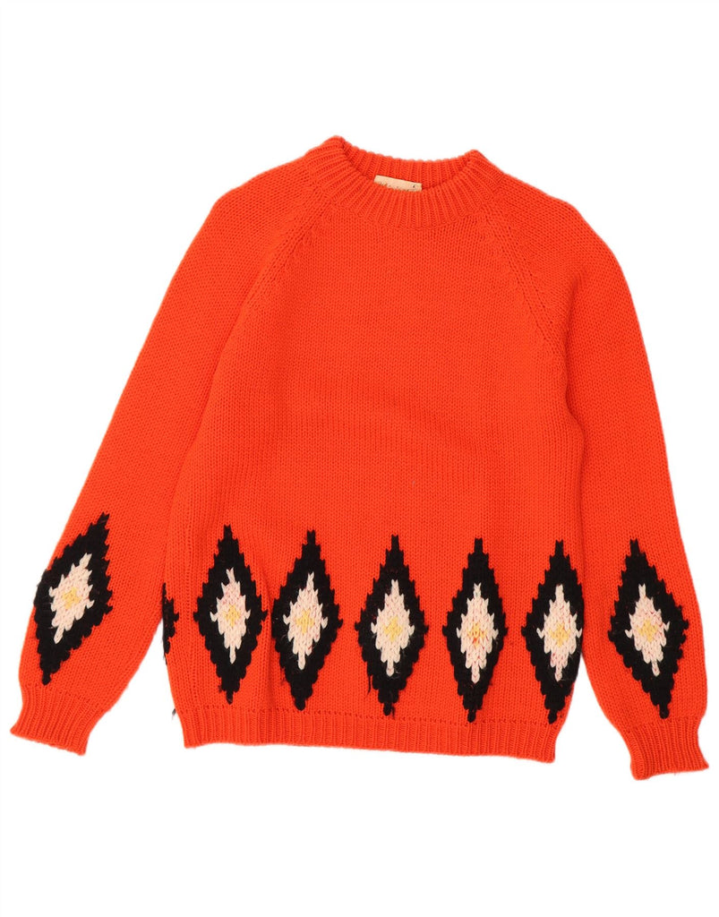 VINTAGE Womens Crew Neck Jumper Sweater UK 12 Medium Orange Fair Isle Wool