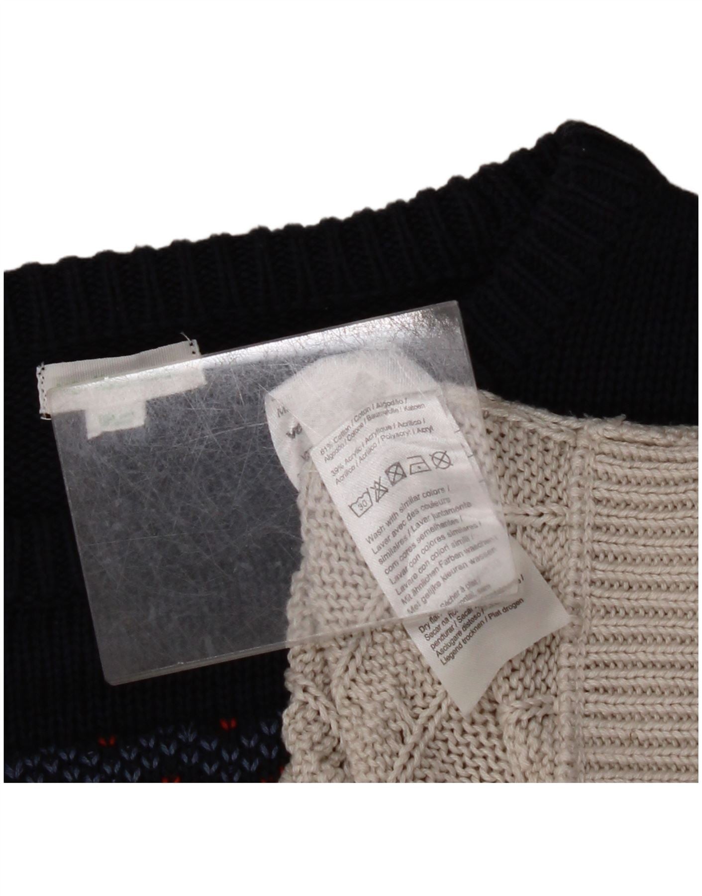 VINTAGE Womens Crew Neck Jumper Sweater UK 14 Medium Grey Fair Isle Cotton