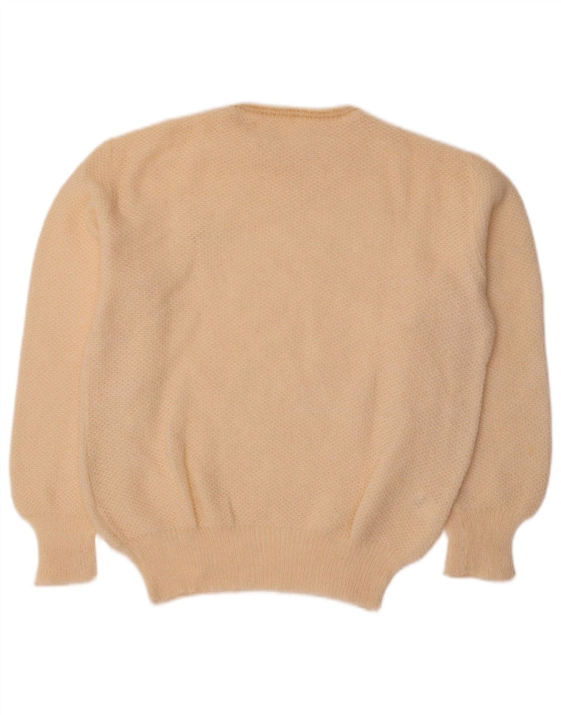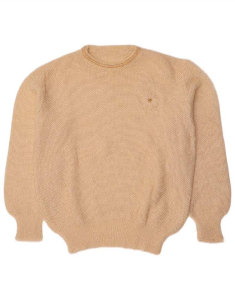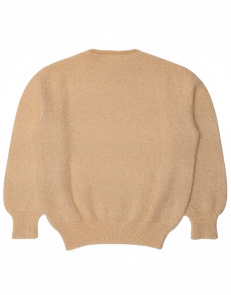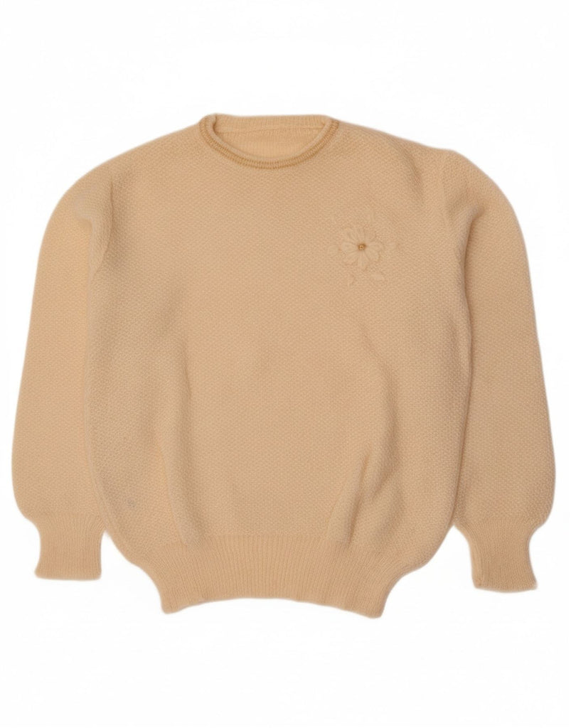 VINTAGE Womens Crew Neck Jumper Sweater UK 16 Large Beige Acrylic