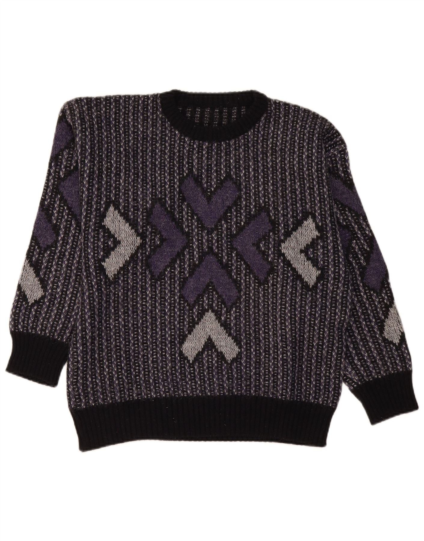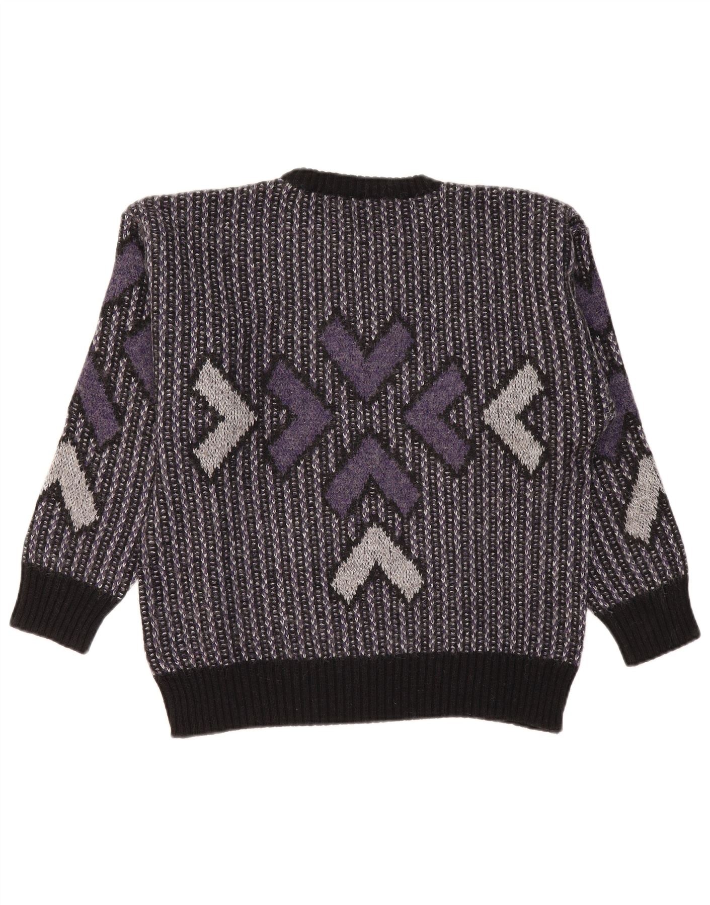 VINTAGE Womens Crew Neck Jumper Sweater UK 16 Large Purple Geometric Wool