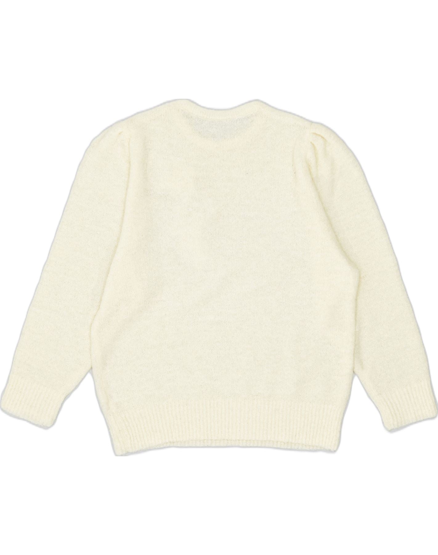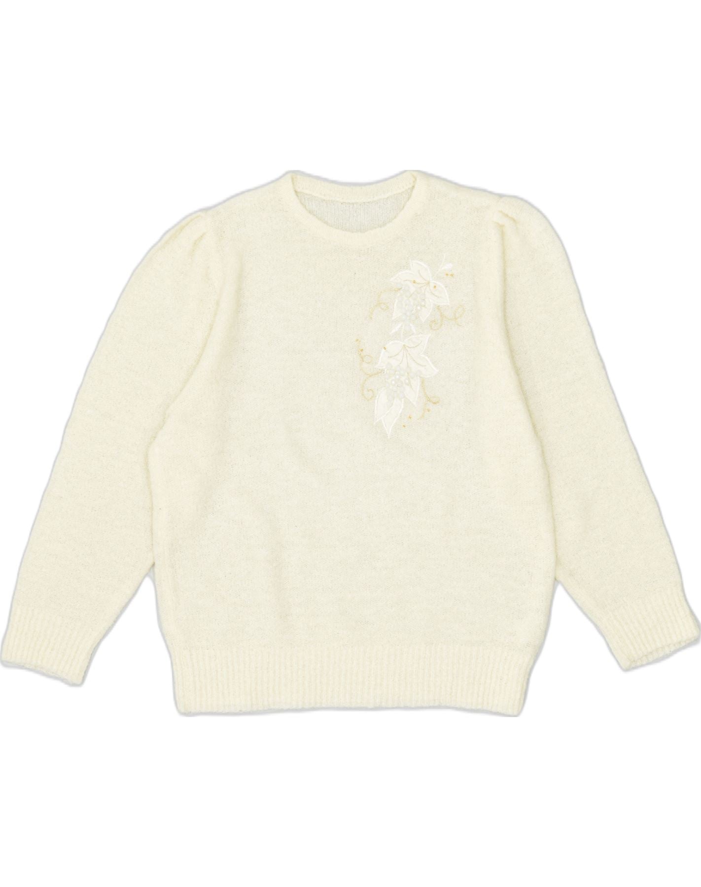 VINTAGE Womens Crew Neck Jumper Sweater UK 20 2XL Off White Flower