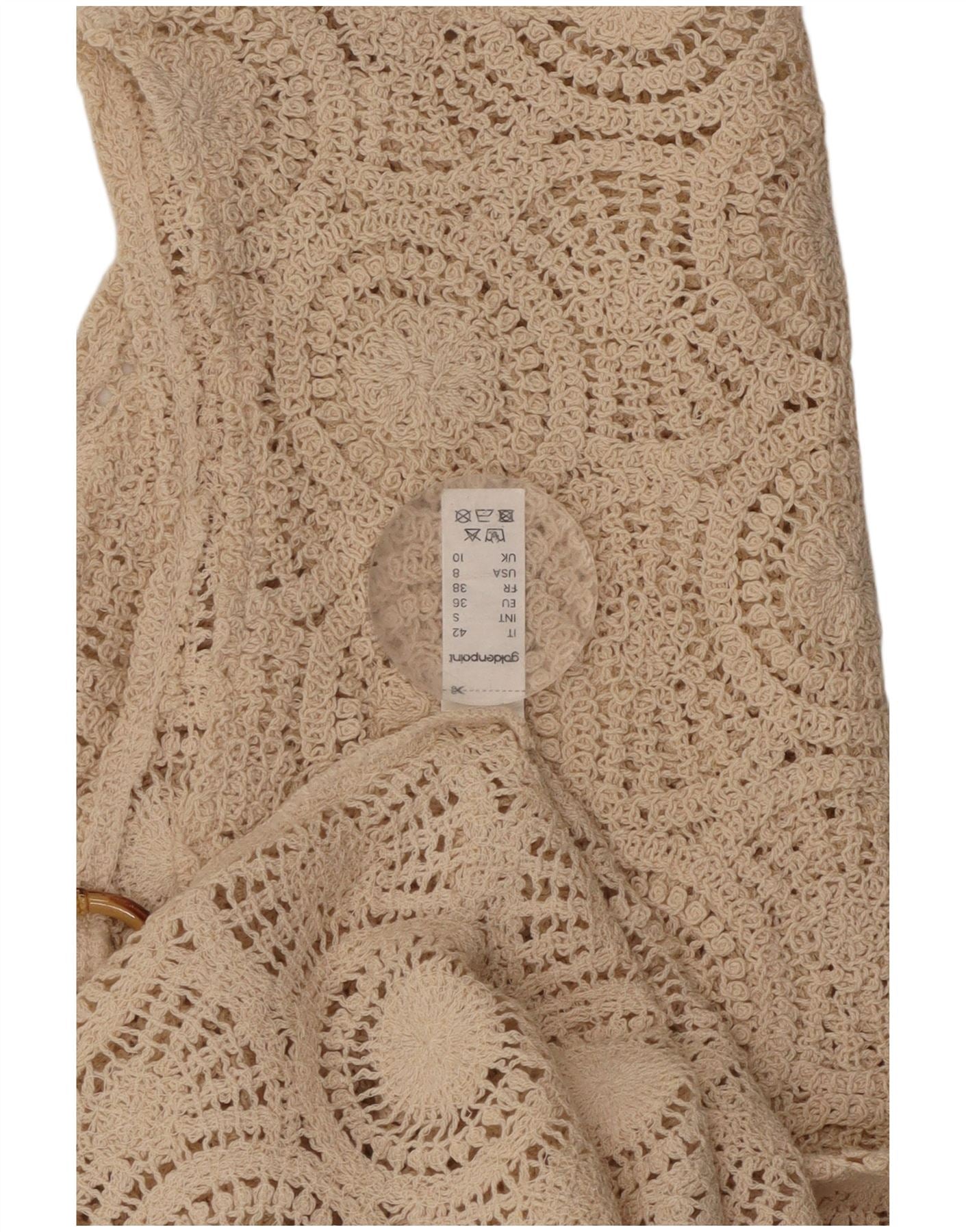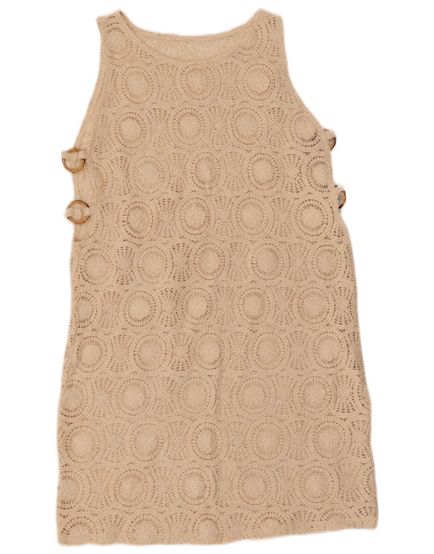VINTAGE Womens Crochet Sleeveless Shift Dress UK 10 Small Beige Cotton
