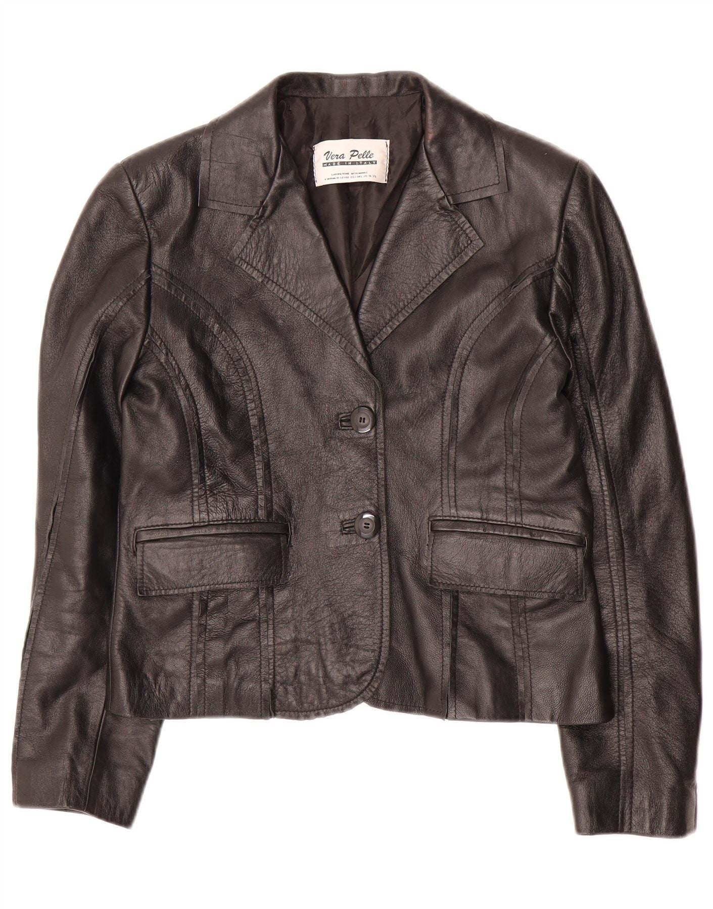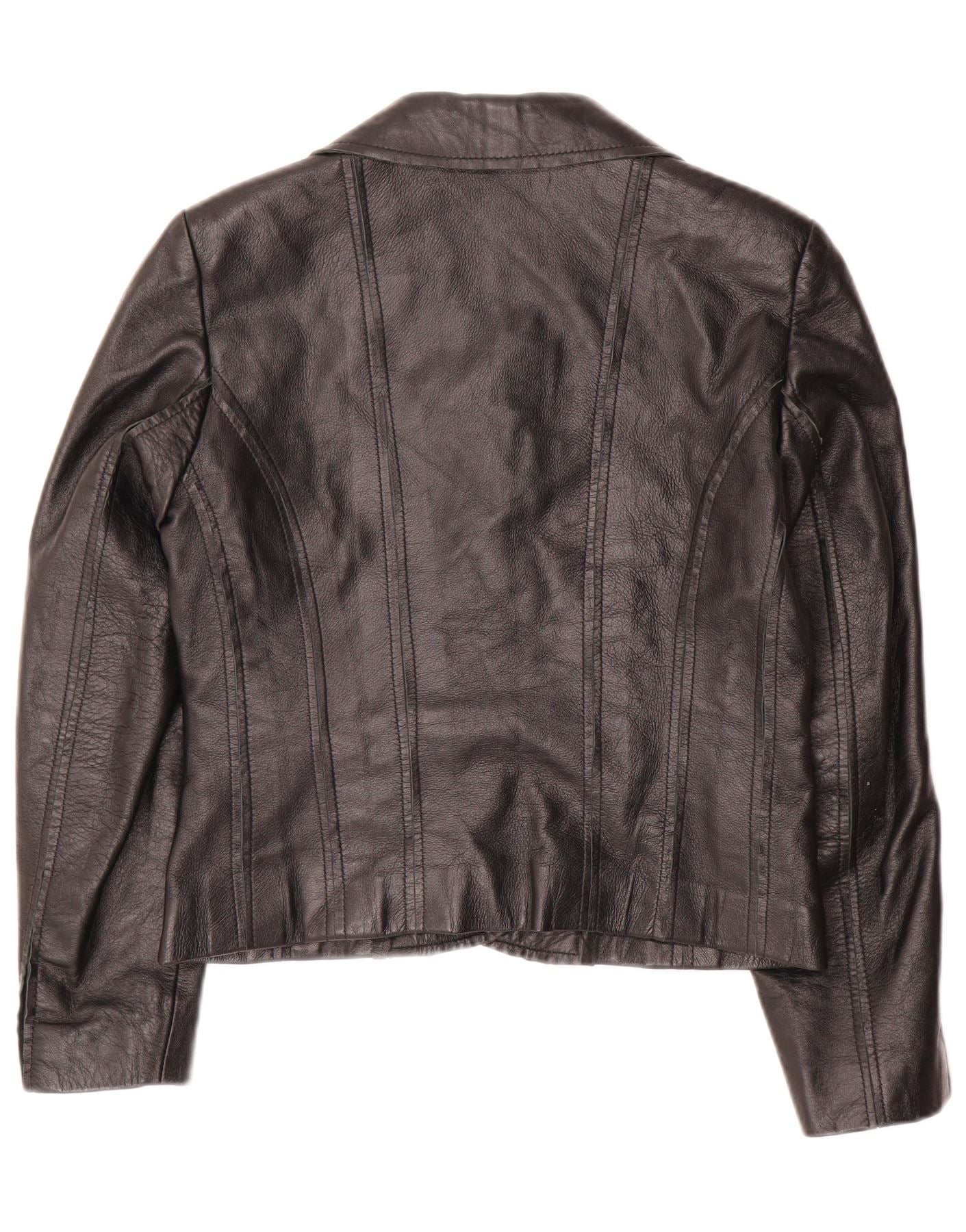 Home > Women's > Depop Clothing > VINTAGE Womens Crop 2 Button Blazer Jacket IT 42 Medium Black Leather