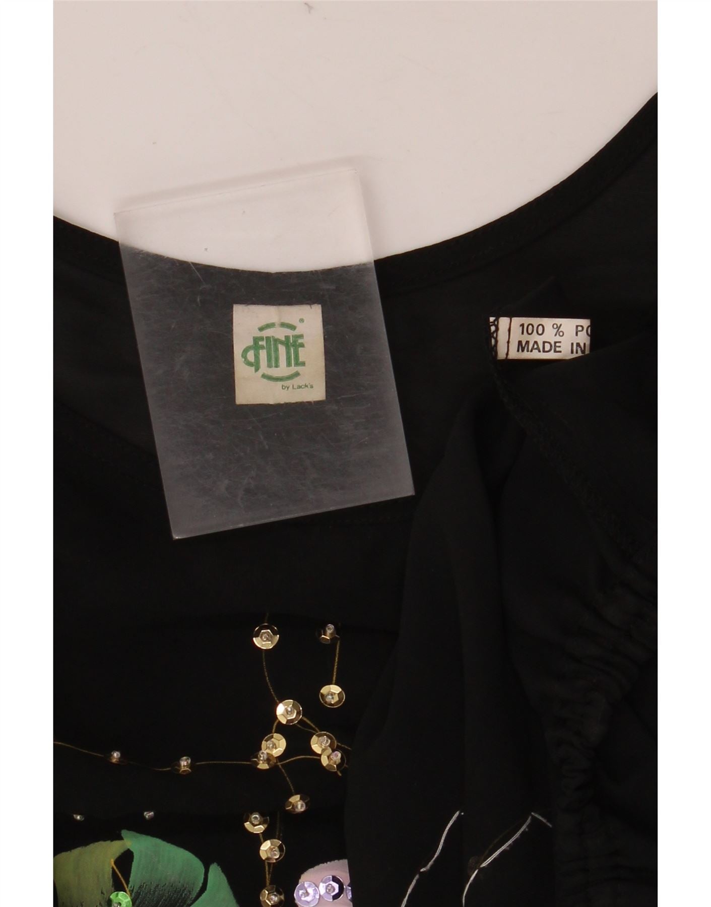 VINTAGE Womens Crop Batwing Blouse Top UK 18 XL Black Floral Polyester