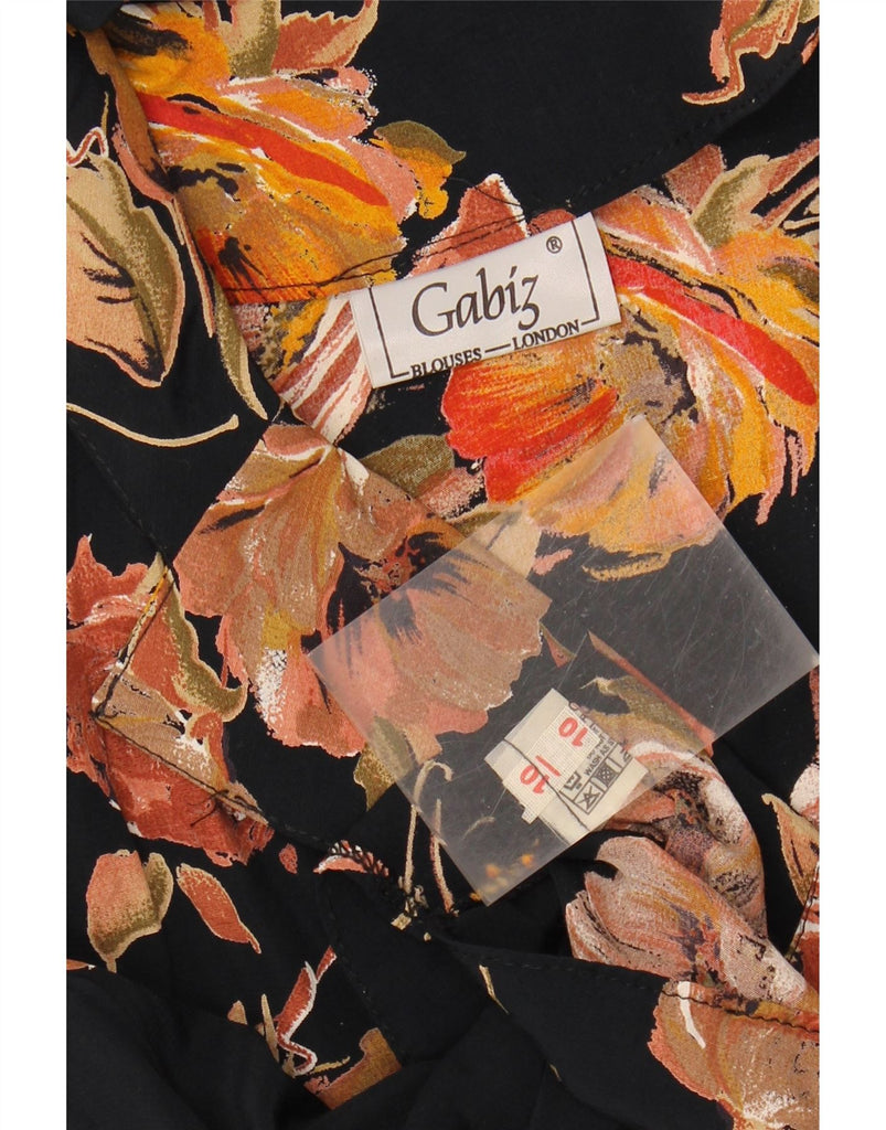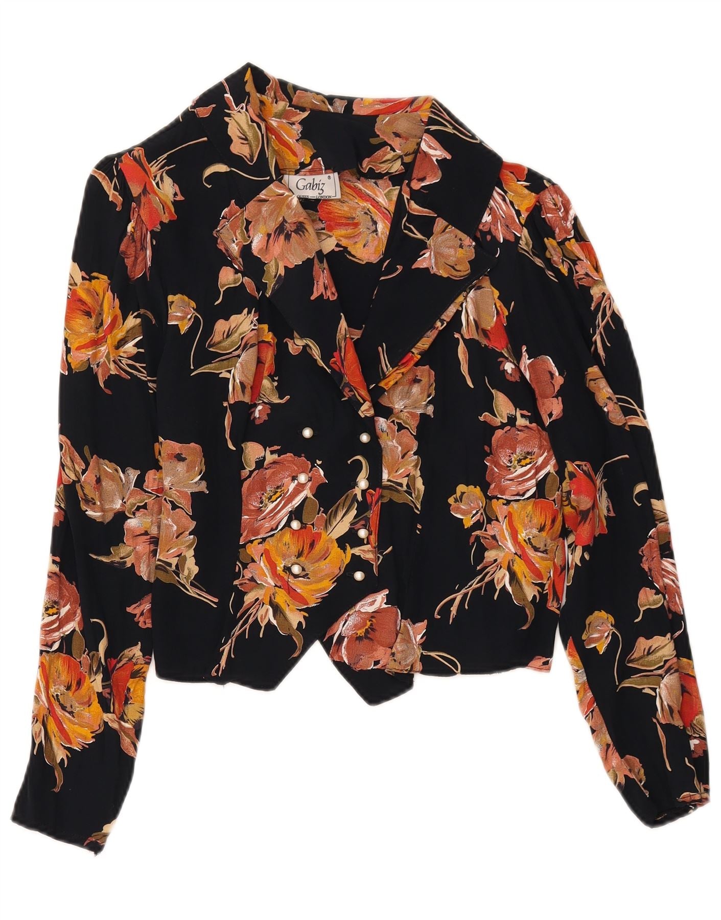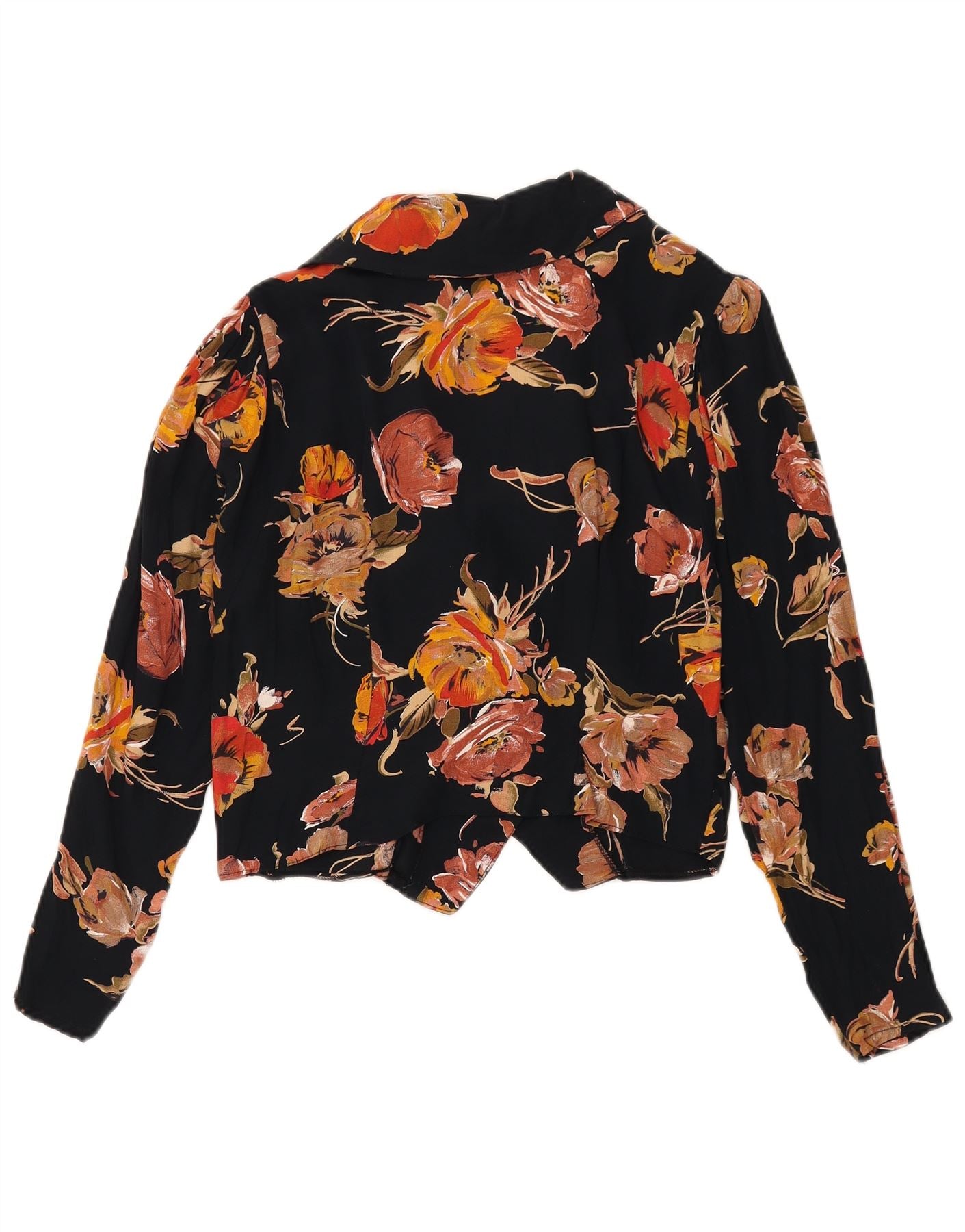 VINTAGE Womens Crop Blazer Jacket UK 10 Small Black Floral Viscose