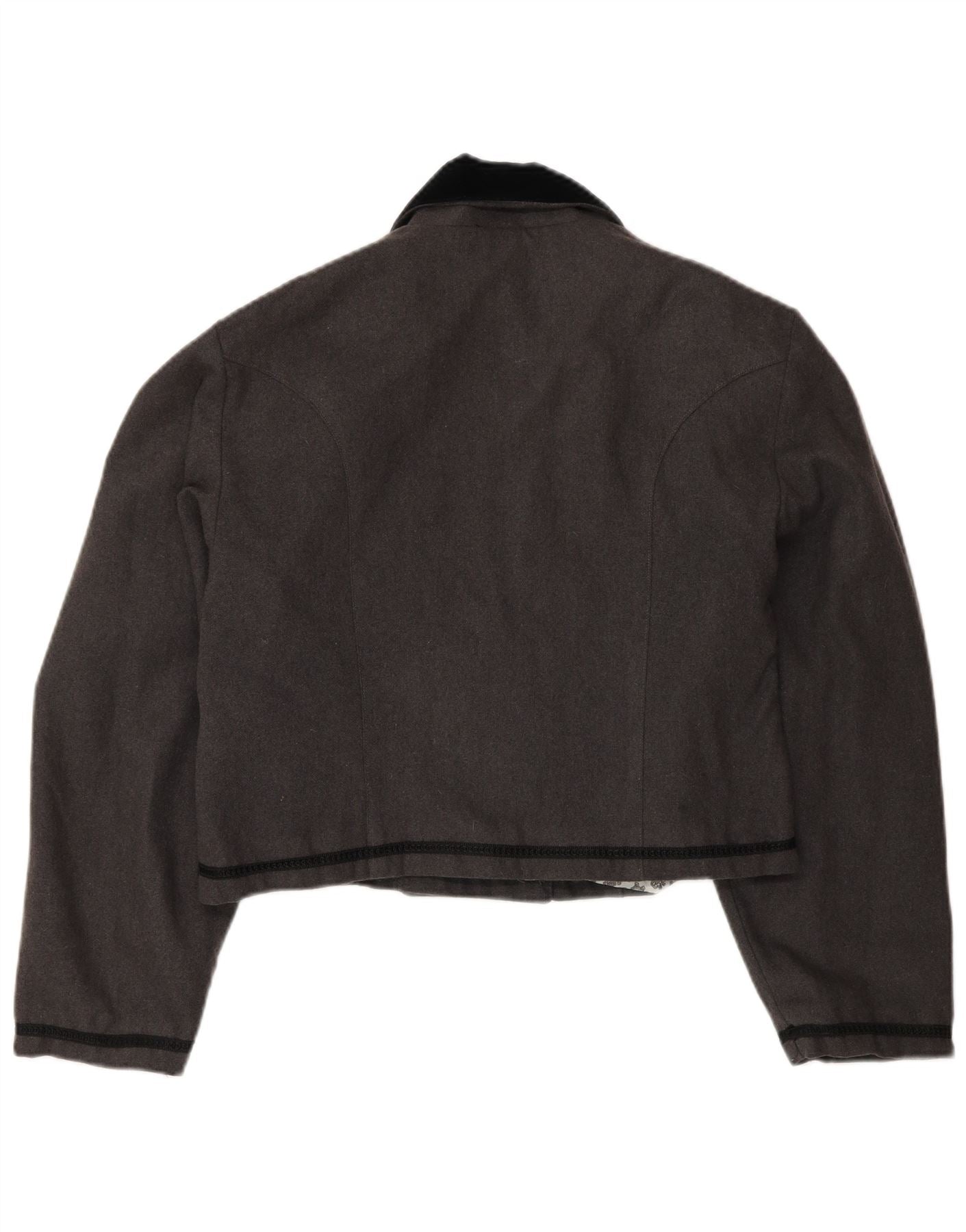 Vintage Womens Crop Blazer Jacket UK 14 Medium Grey Colourblock