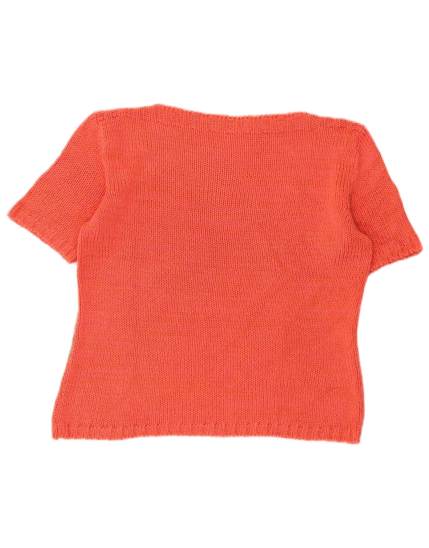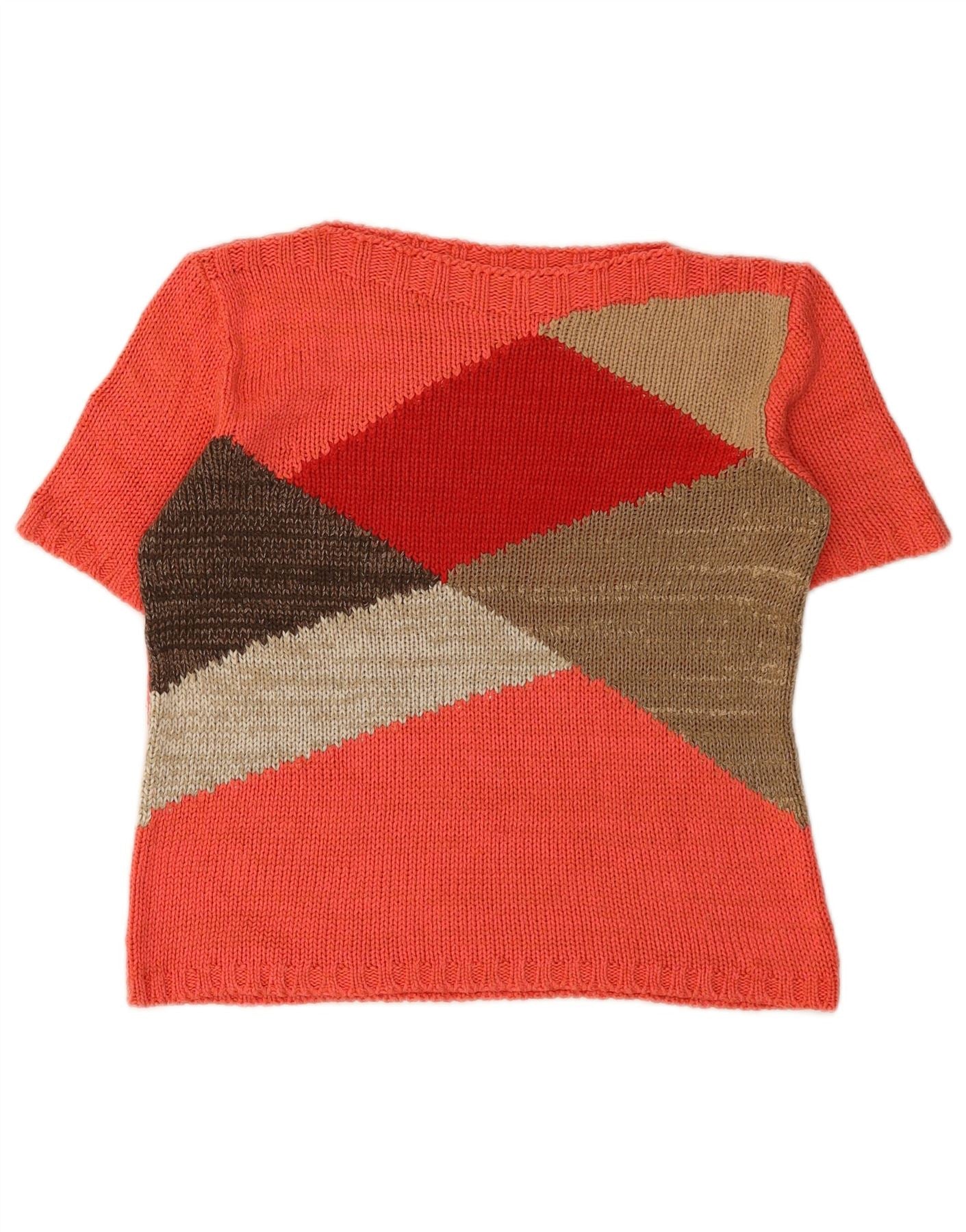 VINTAGE Womens Crop Boat Neck Jumper Sweater UK 12 Medium Red Colourblock