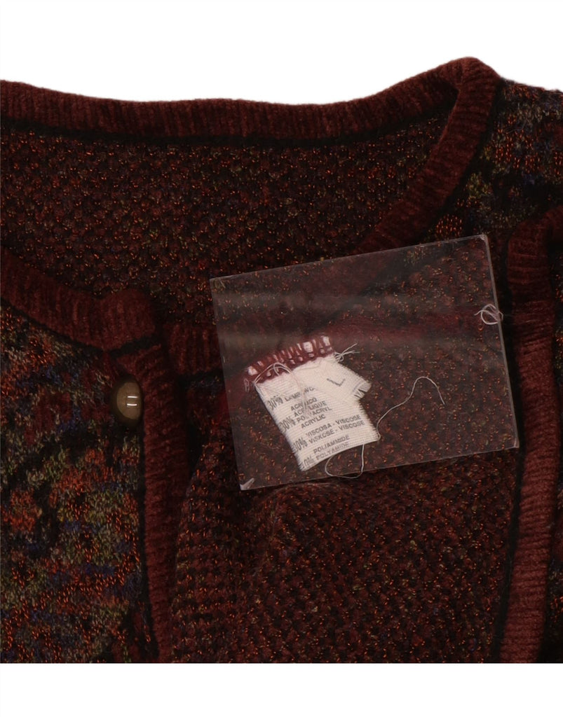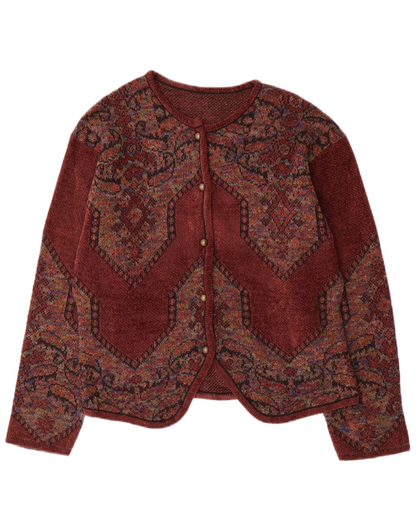 VINTAGE Womens Crop Cardigan Sweater UK 14 Medium Maroon Paisley Wool