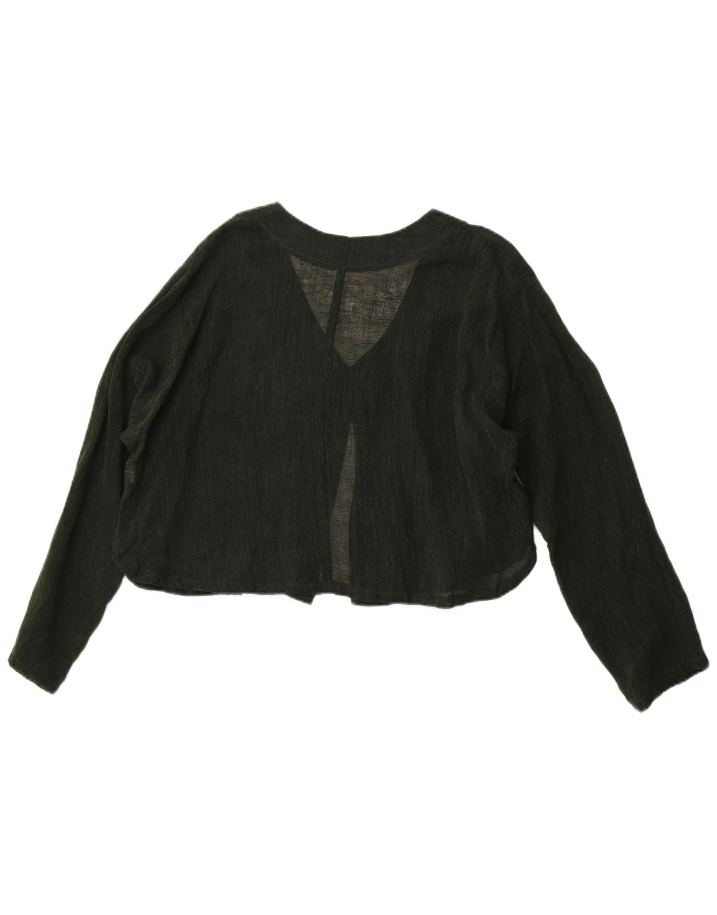 VINTAGE Womens Crop Cardigan Top UK 16 Large Green Cotton