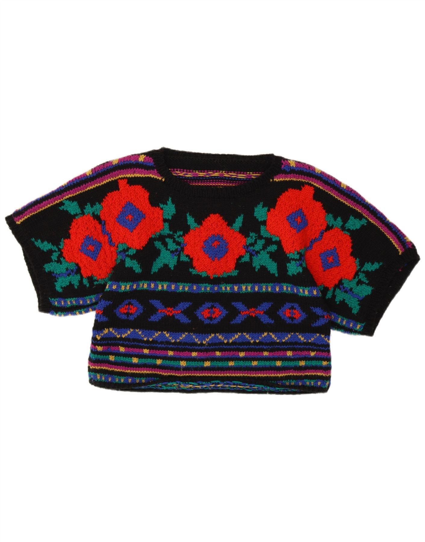 Vintage Womens Crop Crew Neck Jumper Sweater UK 10 Small Black Floral